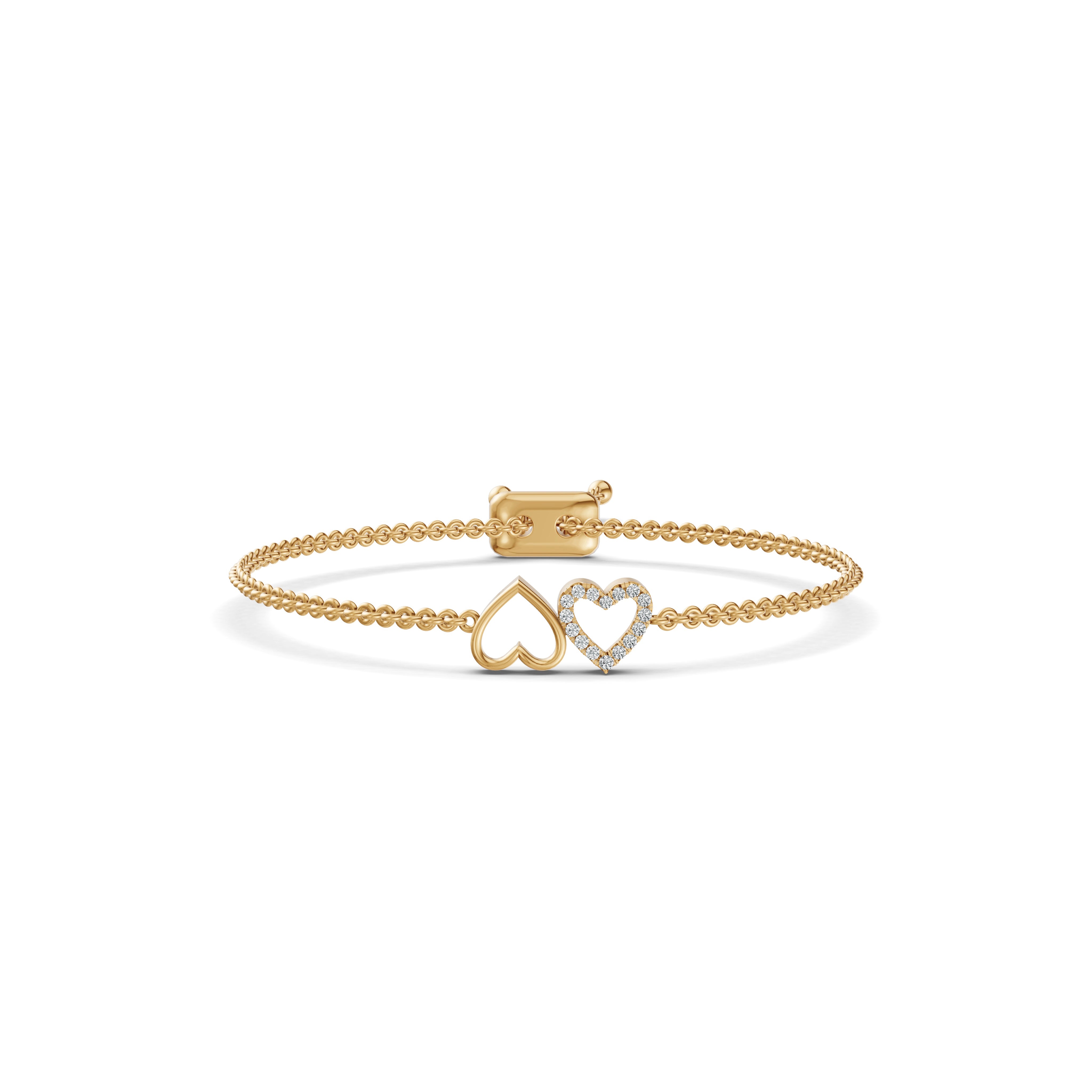 A delicate expression of love and connection, the Dual Heart Diamond Bracelet from the Glimmora Collection features two beautifully balanced heart motifs — one sleek in gold and the other outlined with sparkling lab-grown diamonds. This 9-inch adjustable bracelet is a perfect symbol of love and everyday elegance.