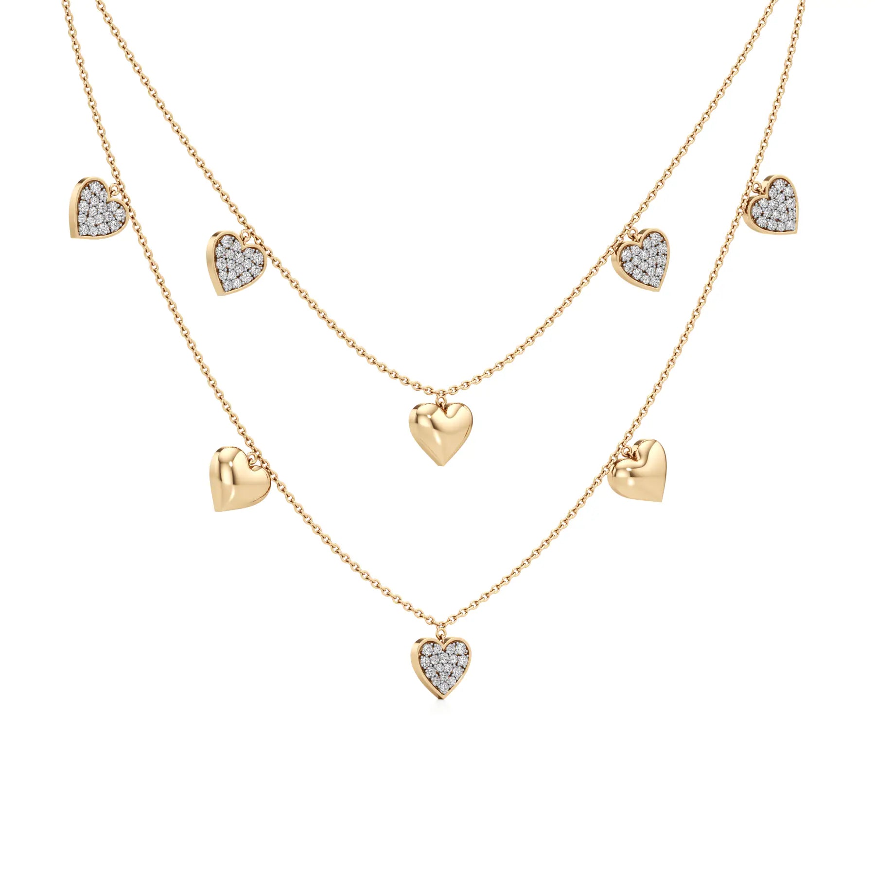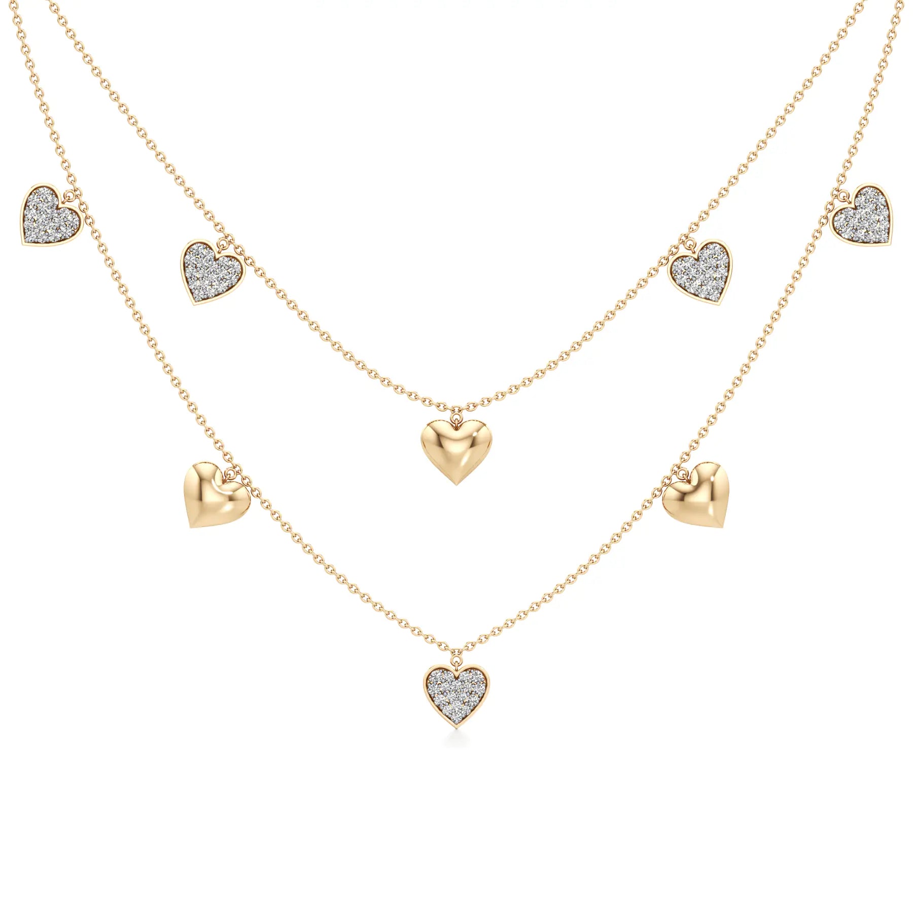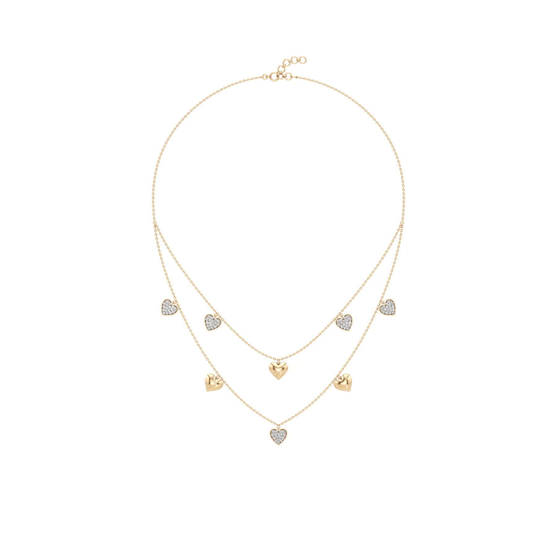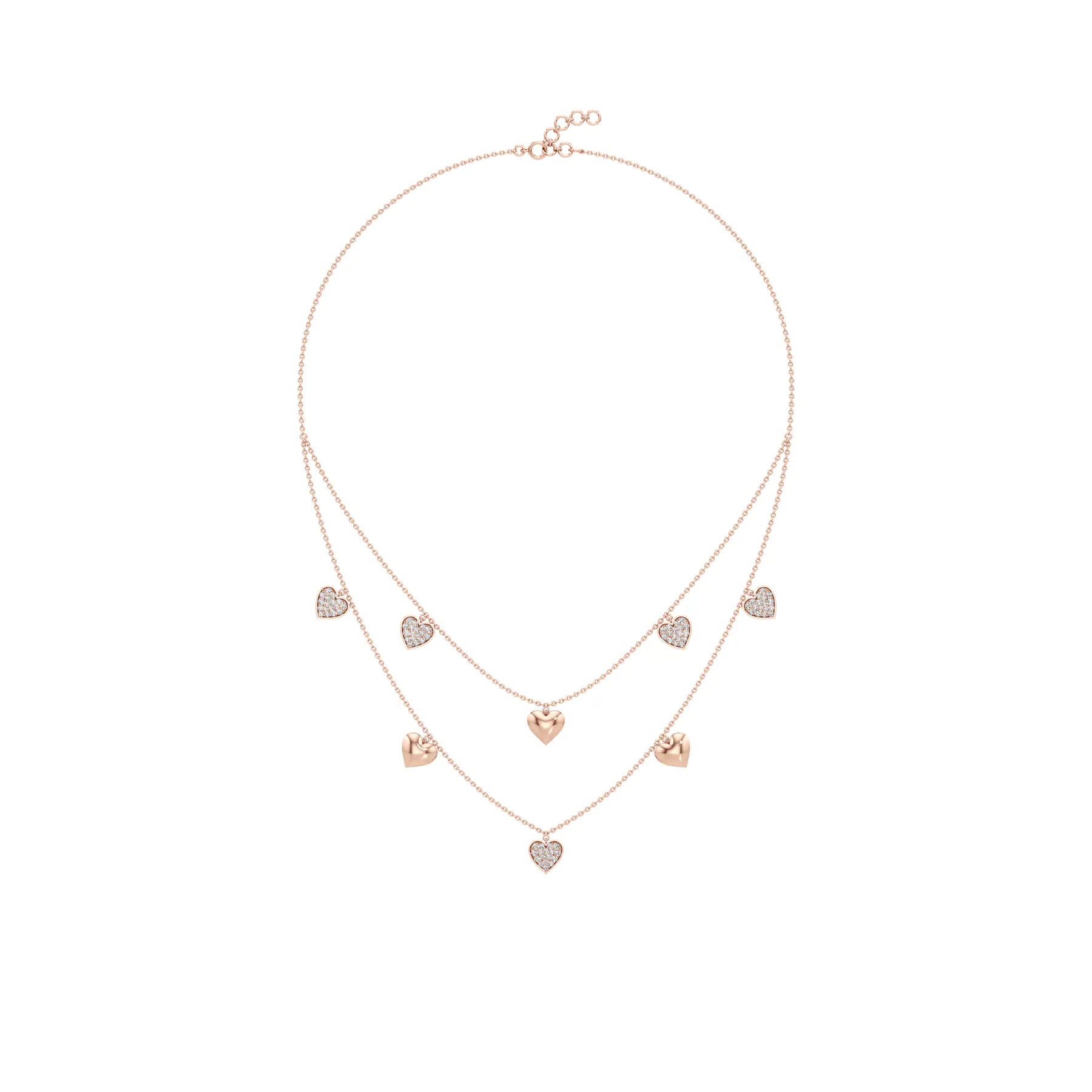 Elevate your party wear look with our Double Happiness Heart Necklace, where simplicity meets sophistication. This necklace boasts a charming design—accentuated by shimmering diamonds.