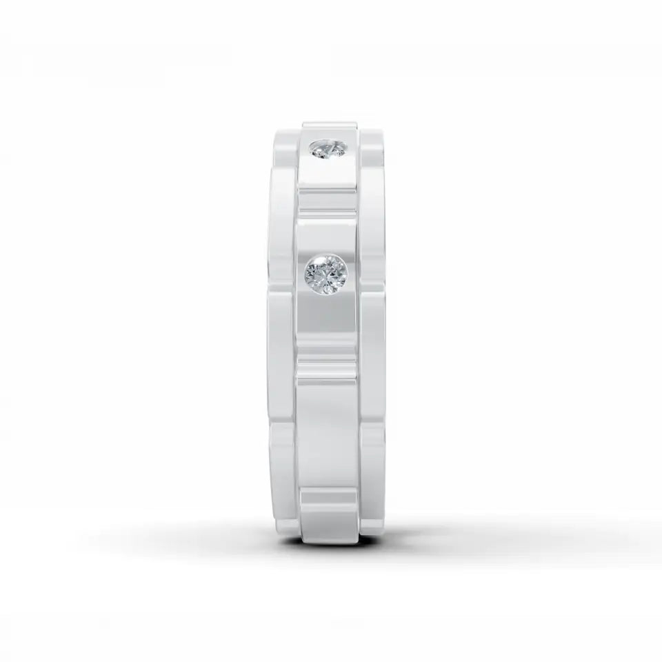 Discover elegance with our Triune Embrace Ring Band, perfect for complementing your wedding attire. Adorned with stunning lab-grown diamonds, this ring band is intricately set in a secure bezel setting.