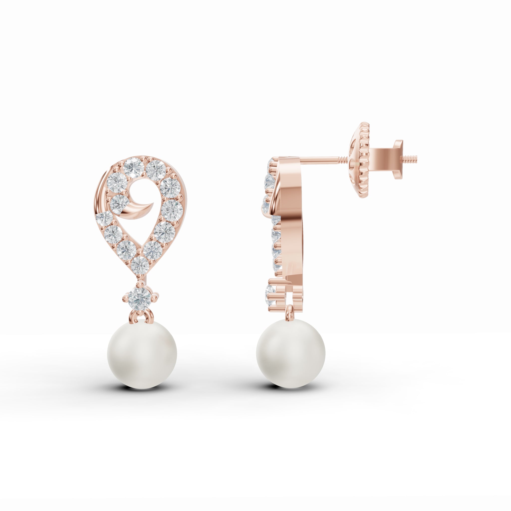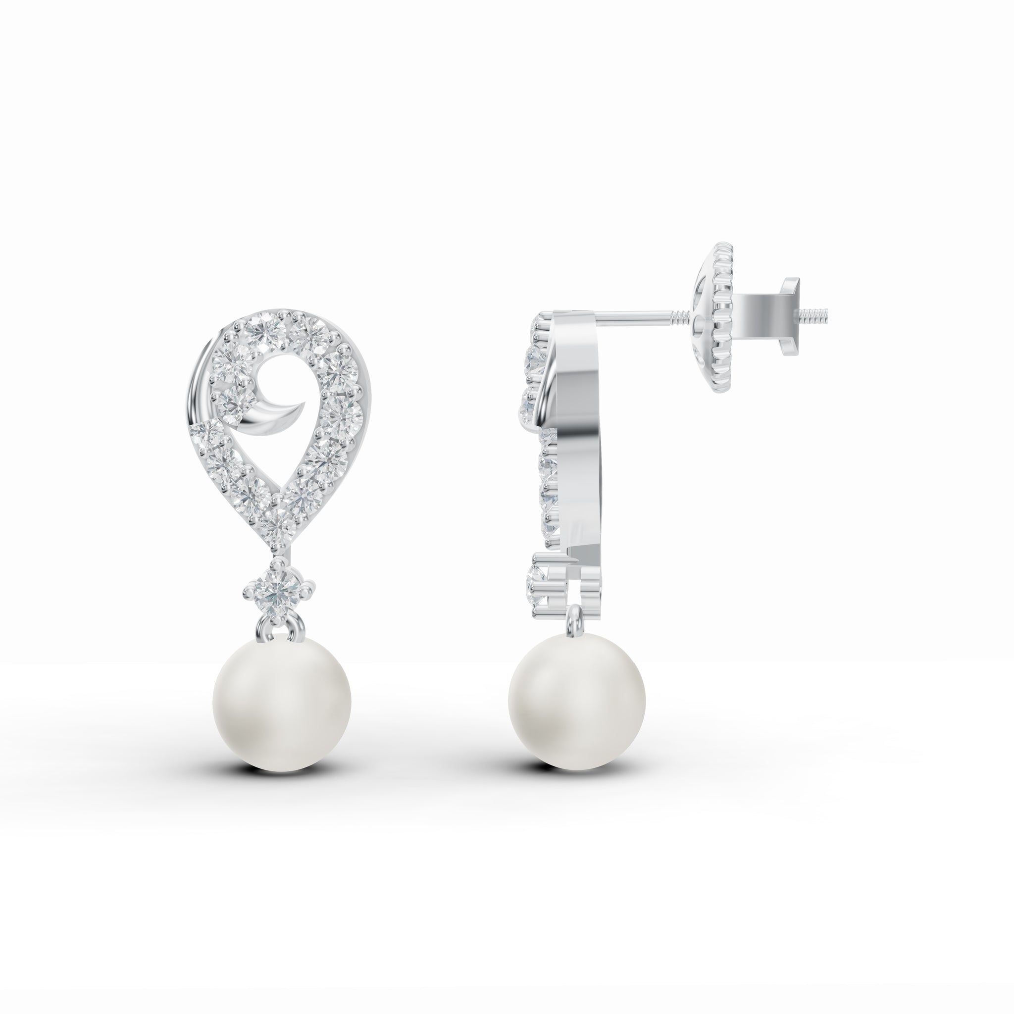 A classic pair of drop earrings featuring round lab diamonds in a secure prong setting and a luminous pearl drop. Set with sparkling diamonds, these lightweight earrings blend timeless elegance with delicate sparkle.