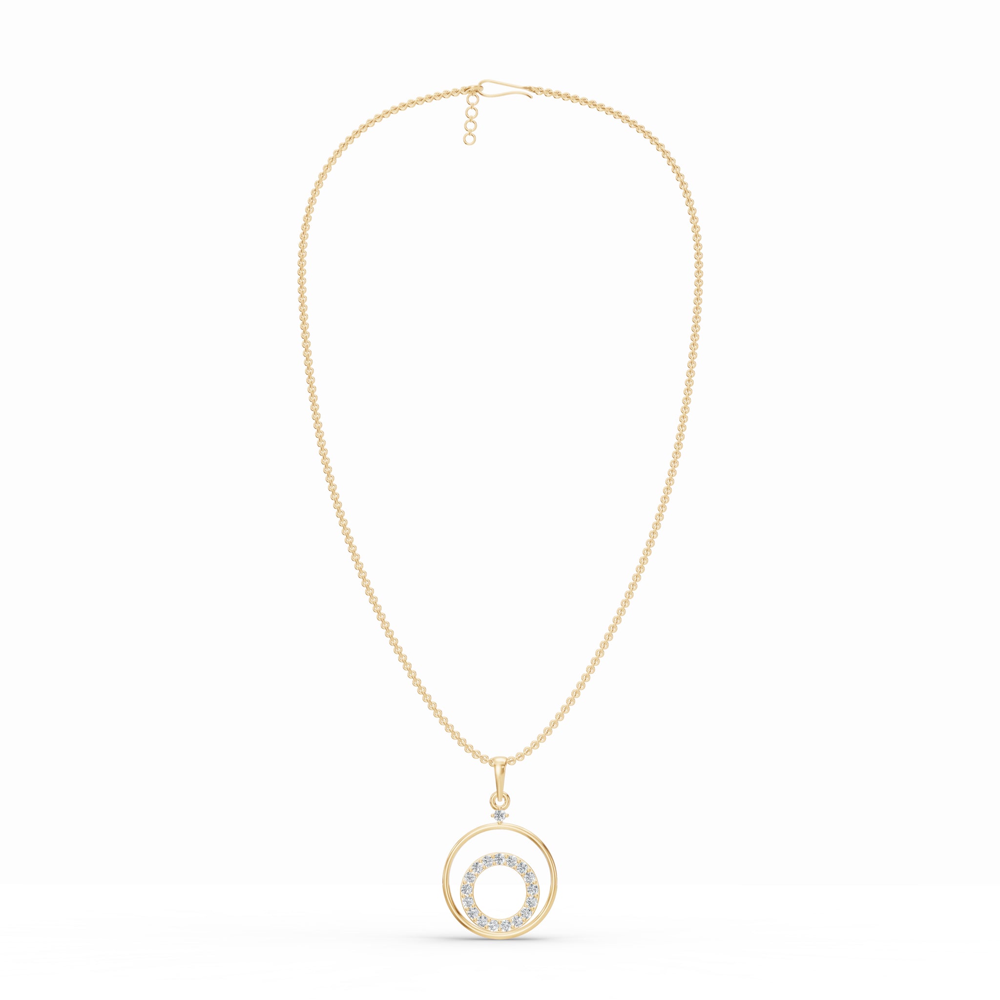The Eternal Circle Diamond Pendant features a radiant circular design adorned with sparkling lab-grown diamonds, symbolizing infinity and timeless elegance — perfect for everyday sophistication. *The chain in the image is for illustrative purposes only.