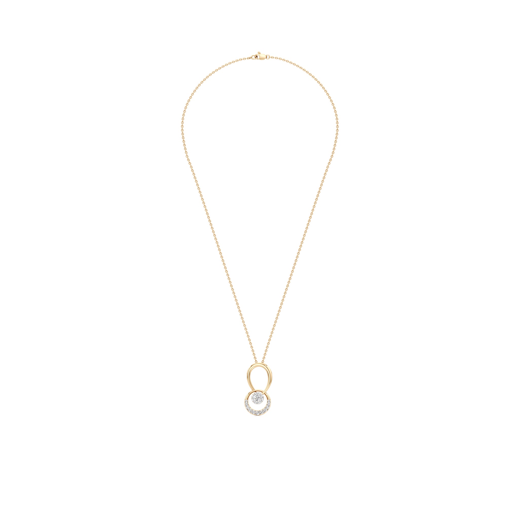A radiant symbol of strength and elegance. With its entwined circles, reminiscent of flickering flames, adorned with sparkling diamonds, this pendant is sure to ignite your passion for style. *The chain in the image is for illustrative purposes only.