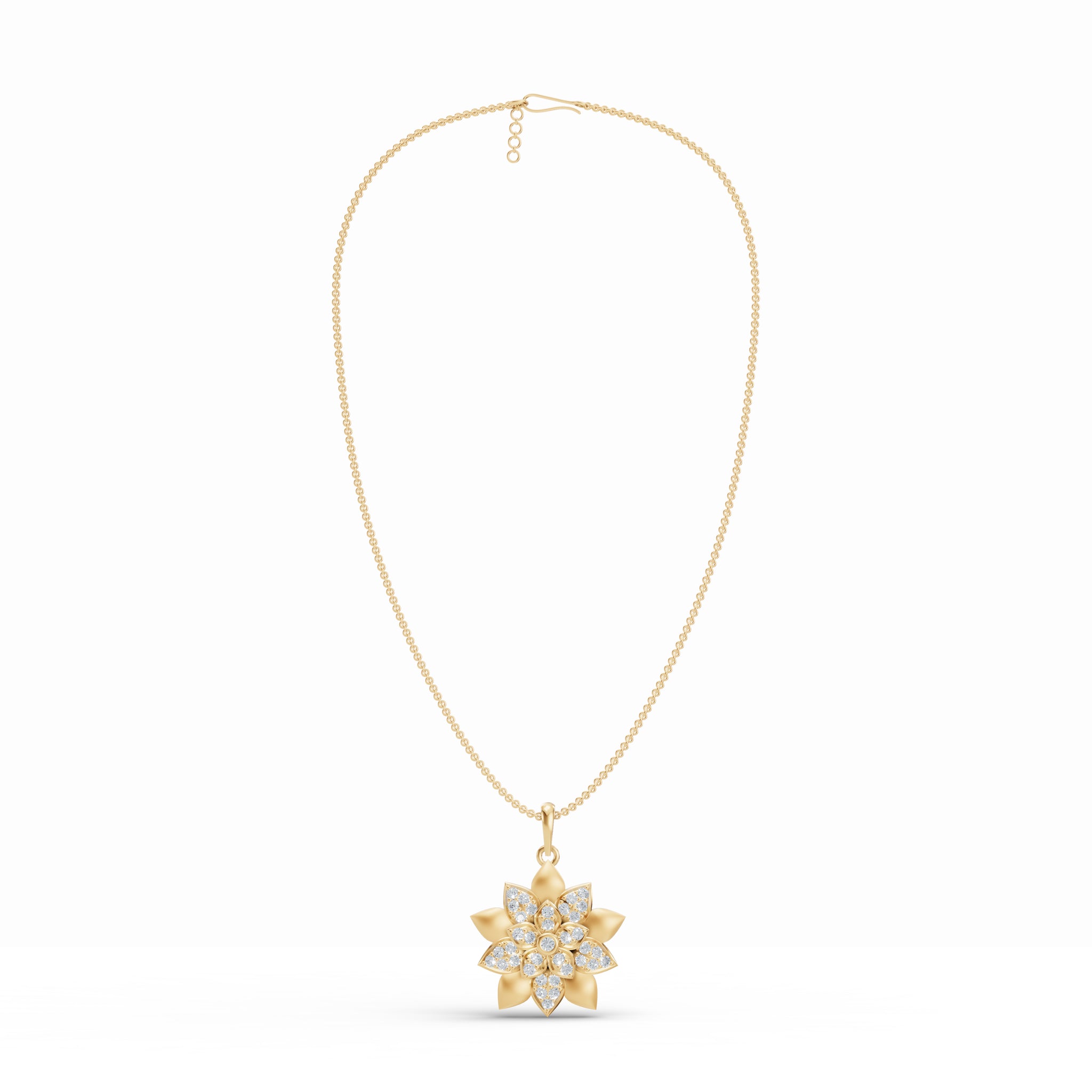The Blossom Bloom Diamond Pendant features a radiant floral design set with sparkling lab-grown diamonds, capturing the beauty of nature with timeless elegance and sophistication. *The chain in the image is for illustrative purposes only.