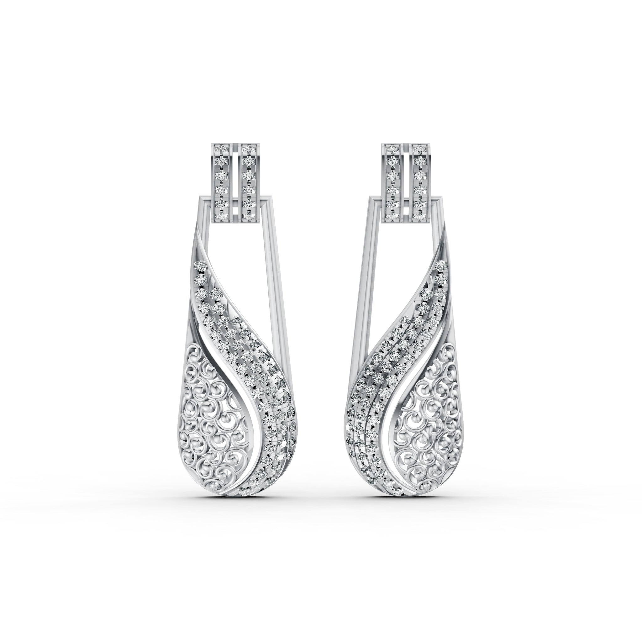 Elegant Wave Diamond Drop Earrings