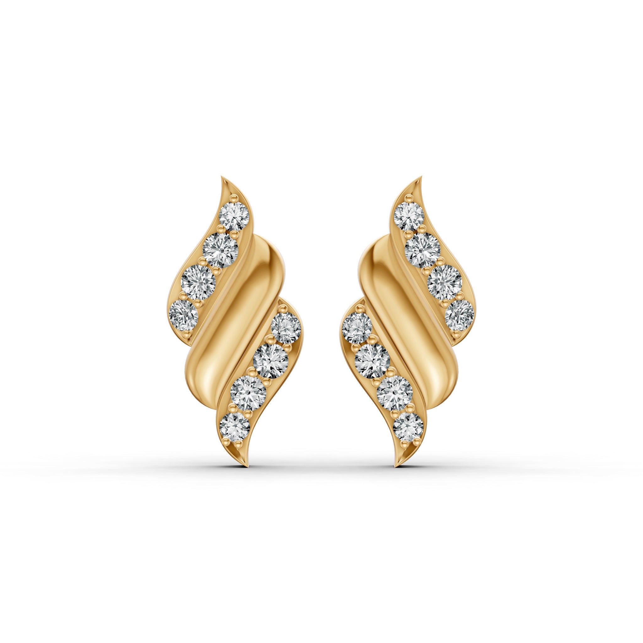 The Elegant Wave Diamond Stud Earrings showcase graceful gold curves adorned with sparkling lab-grown diamonds, capturing fluid motion and timeless beauty — perfect for everyday elegance.
