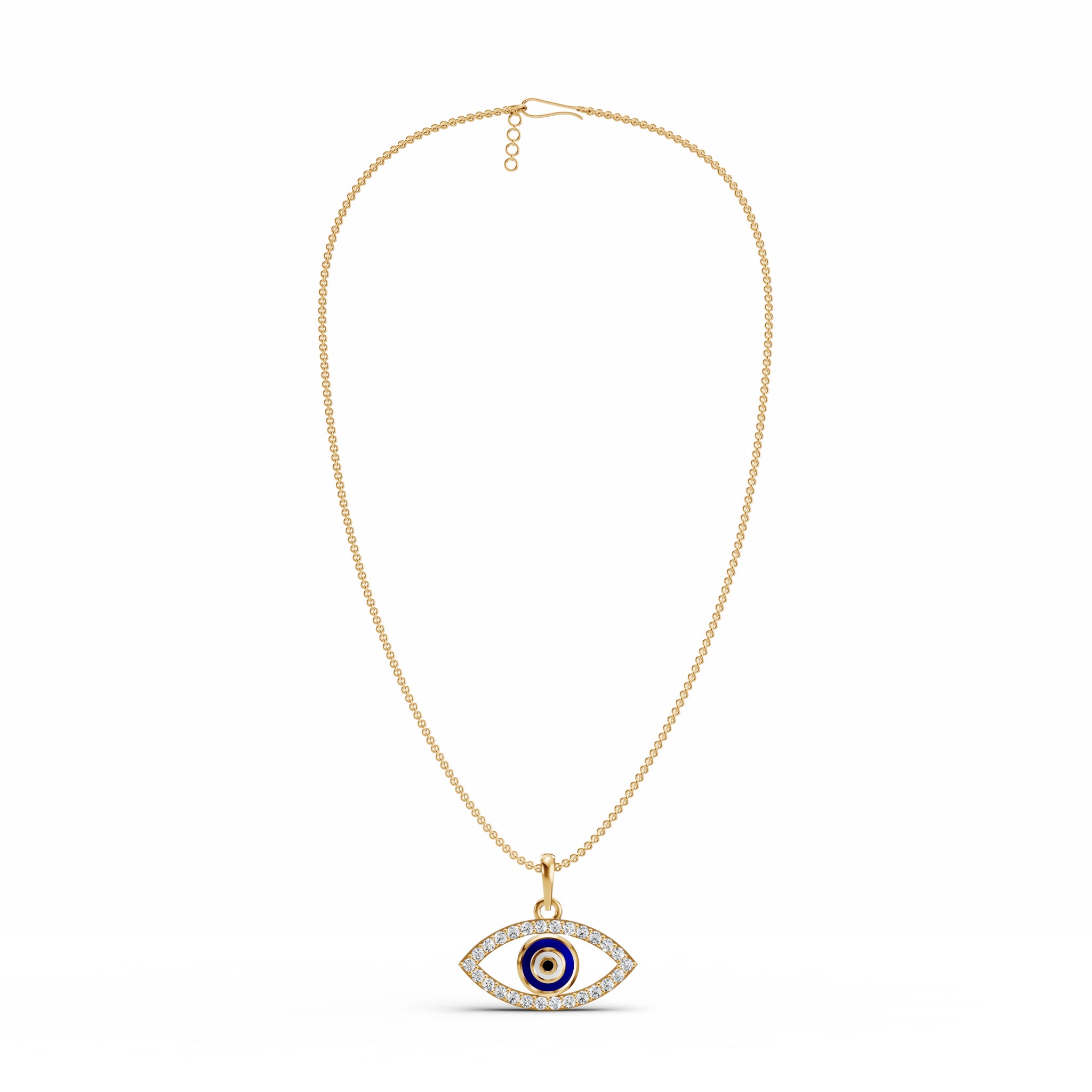 Stay stylish and protected with the Evil Eye Diamond Pendant, crafted in gold and accented with sparkling lab-grown diamonds. A modern talisman that blends tradition with elegance. *The chain in the image is for illustrative purposes only.