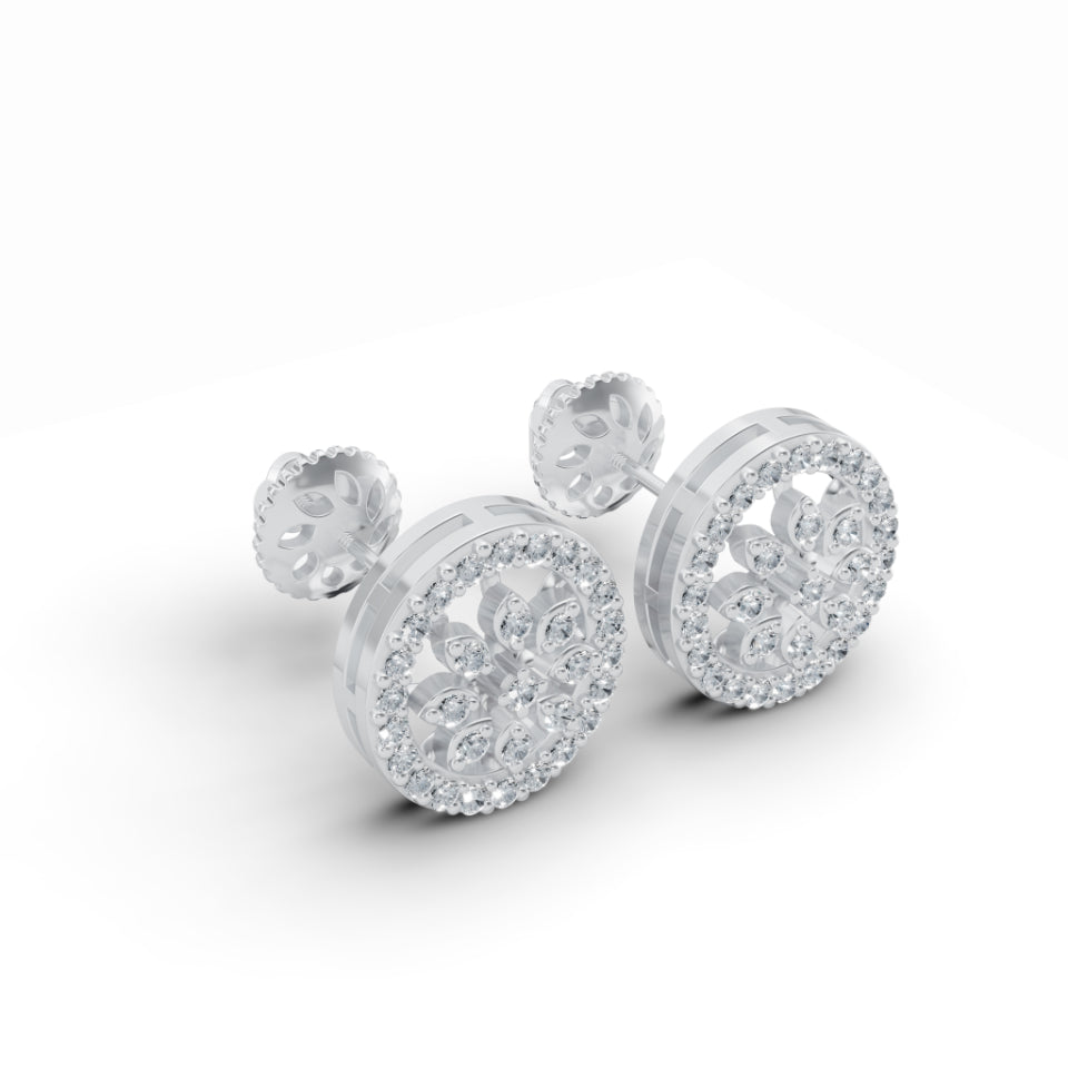 Flower Bloom Halo Diamond Stud Earrings