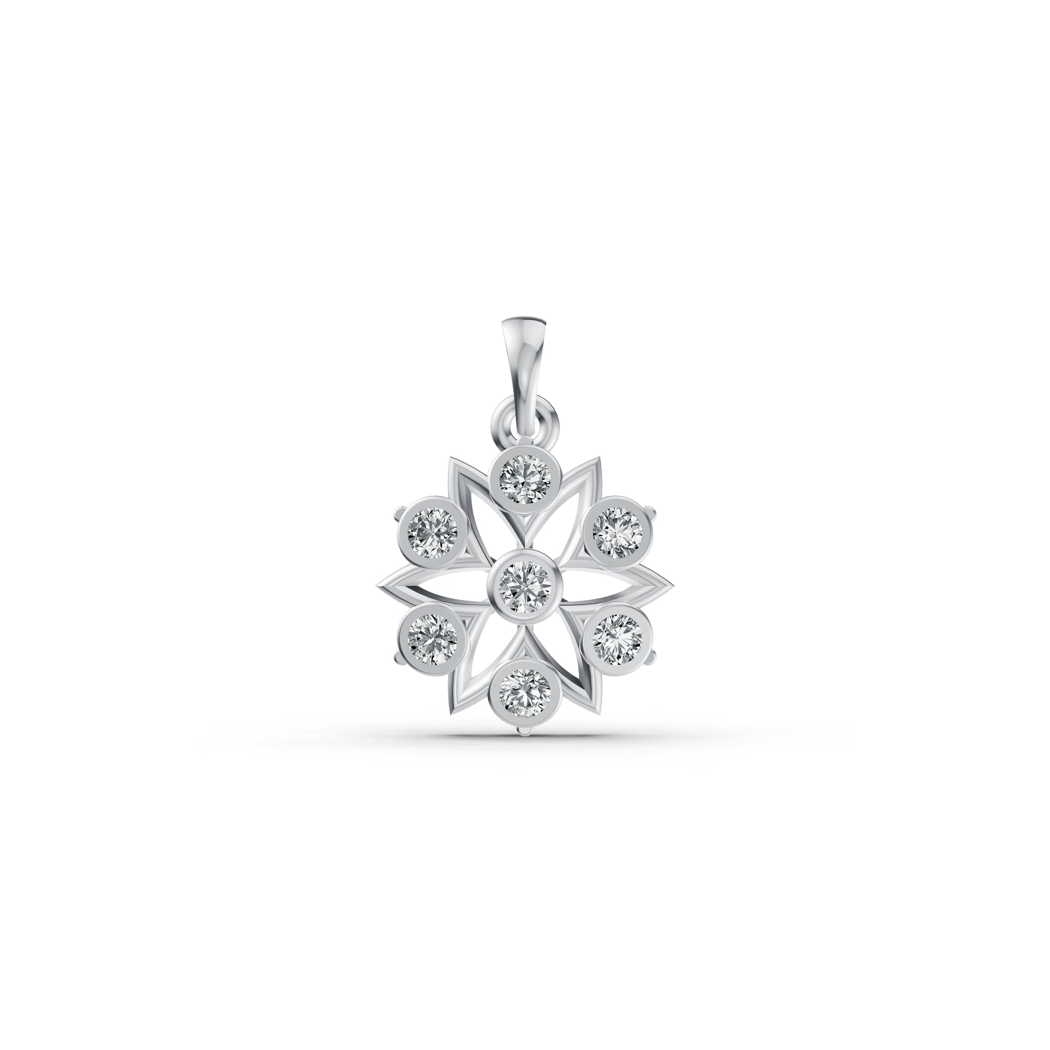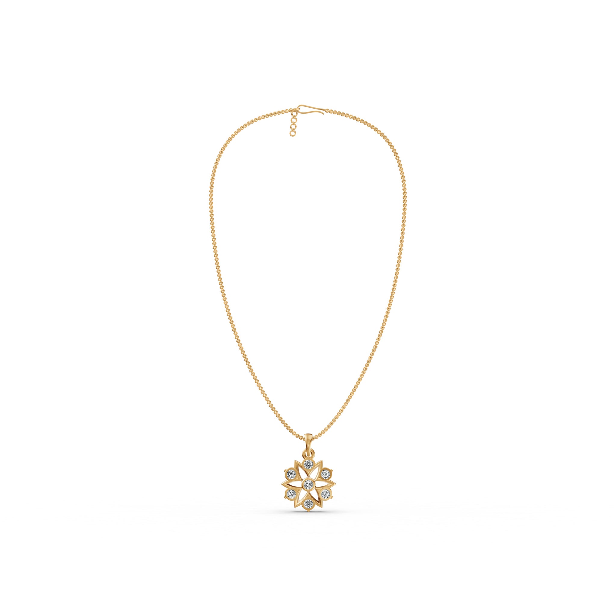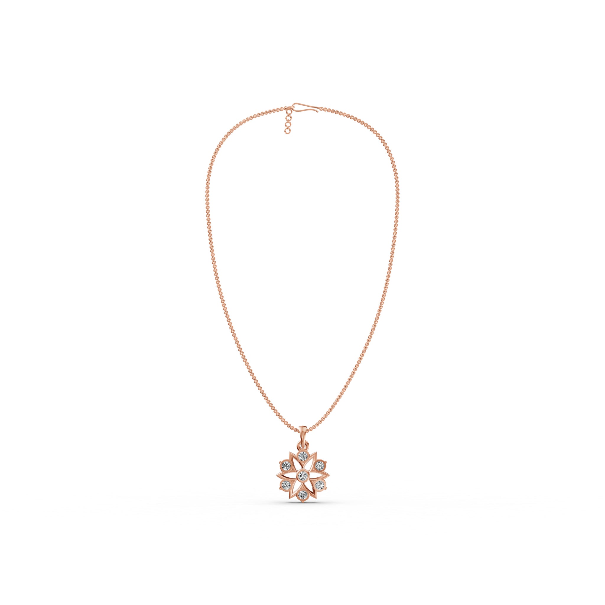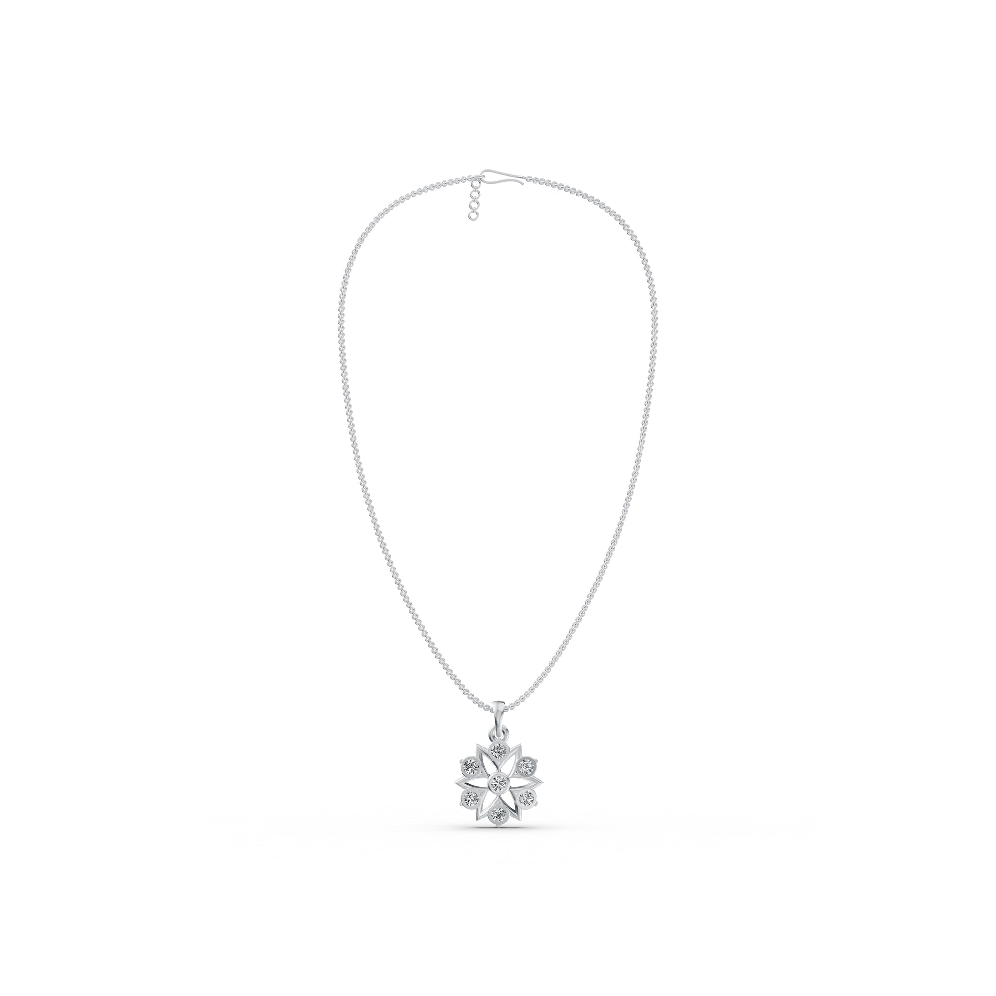 A radiant floral-inspired diamond pendant crafted to shimmer from every angle. Its blooming silhouette adds elegance to everyday style and sparkle to special moments. *The chain in the image is for illustrative purposes only.