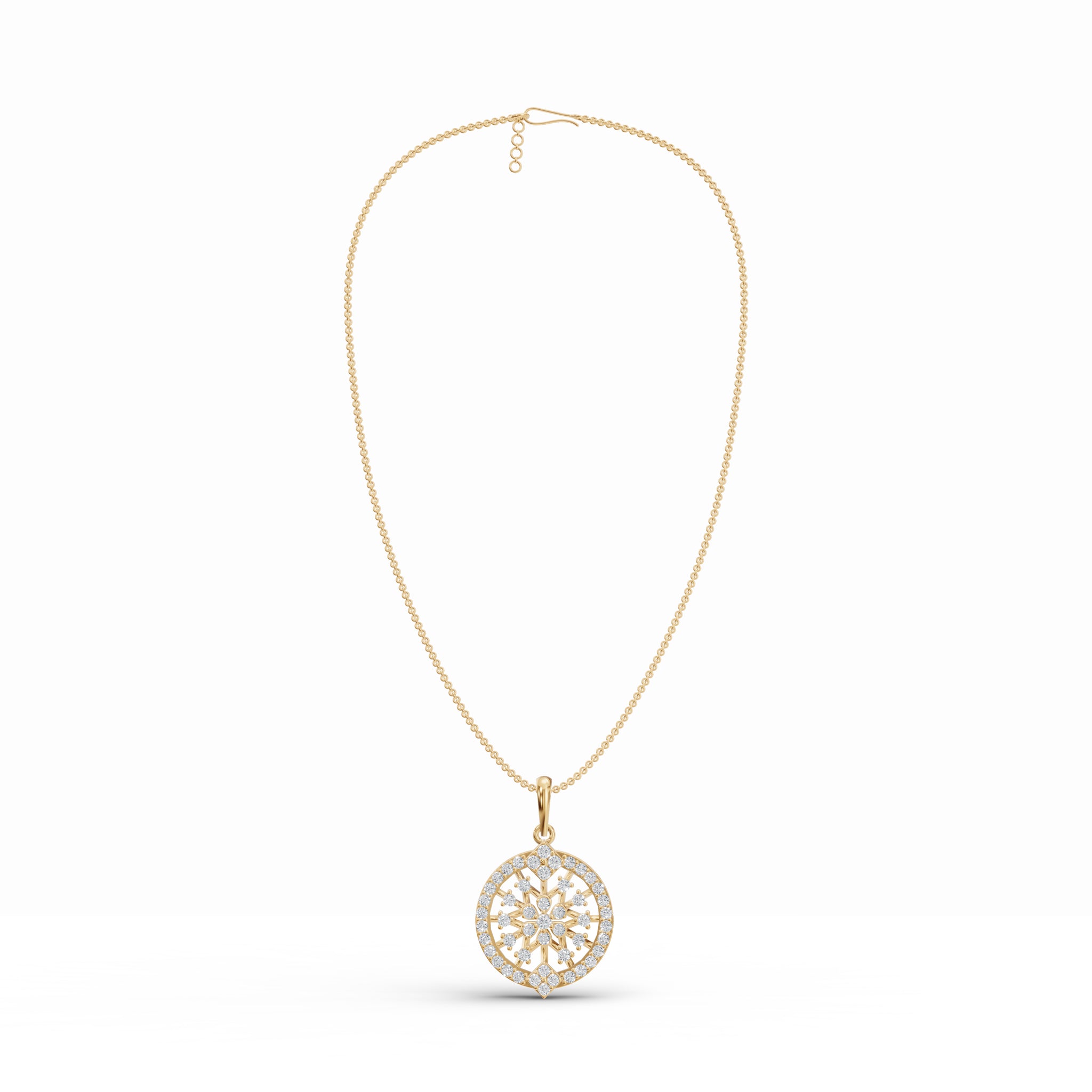 From the Glimmora Collection — the Radiant Halo Diamond Pendant captures light with every move. Intricate layers of lab-grown diamonds form a mesmerizing circular bloom, adding timeless brilliance to your style. *The chain in the image is for illustrative purposes only.