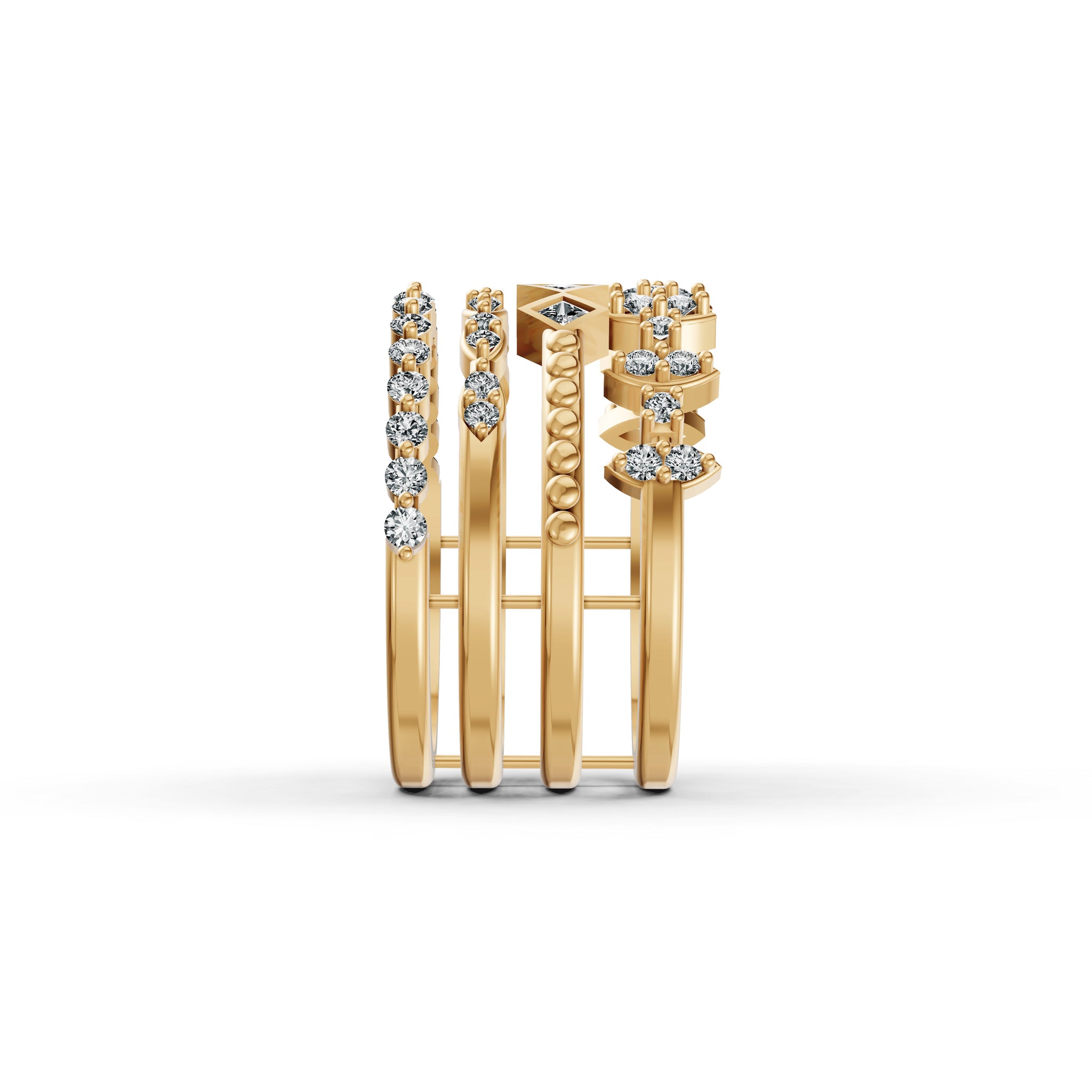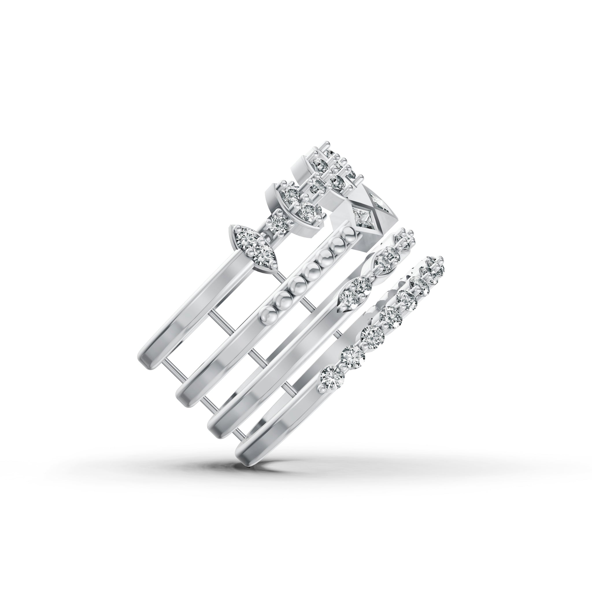 The Stackable Geometric Diamond Ring features a unique multi-layered design with intricate geometric diamond patterns, offering a bold, modern statement that’s perfect for stacking or solo wear.