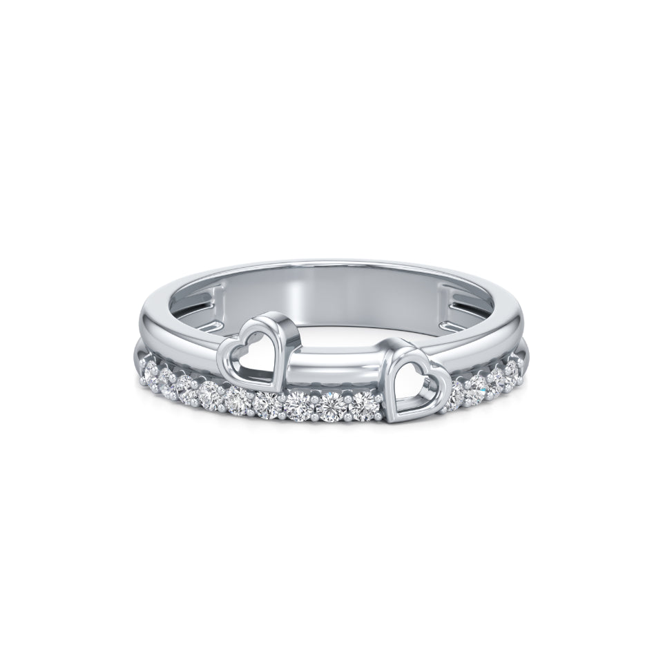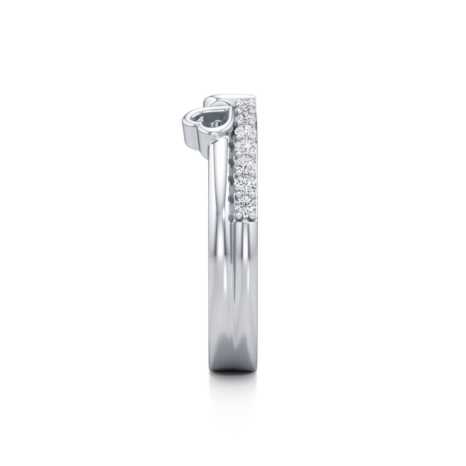This woman's casual ring features a charming design with two entwined hearts, adorned with stunning lab-grown diamonds. Set in a secure prong setting, this piece radiates elegance and sophistication.