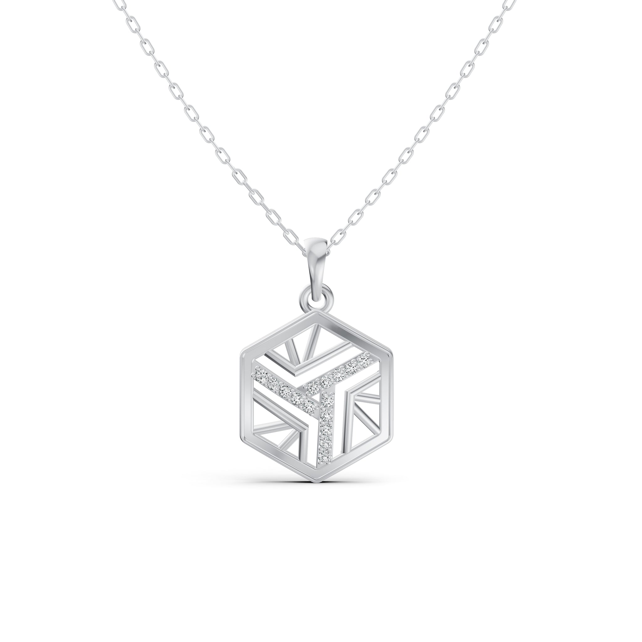 A sharp geometric pendant accented with diamonds, designed for a modern look that blends structure, strength and subtle sparkle. *The chain in the image is for illustrative purposes only.