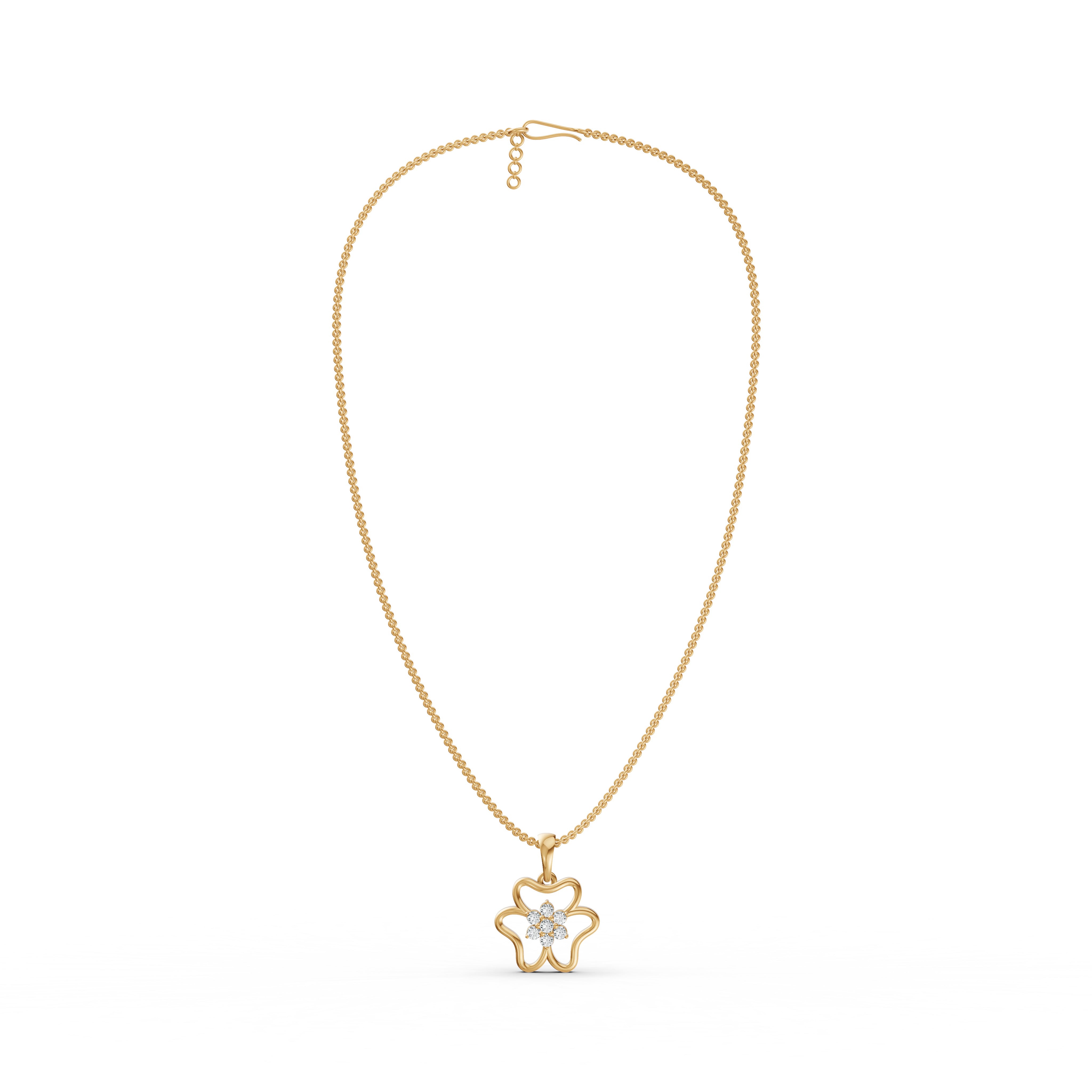 A delicate flower-shaped pendant adorned with sparkling lab-grown diamonds. Perfect for everyday elegance or as a gift to someone special. *The chain in the image is for illustrative purposes only.
