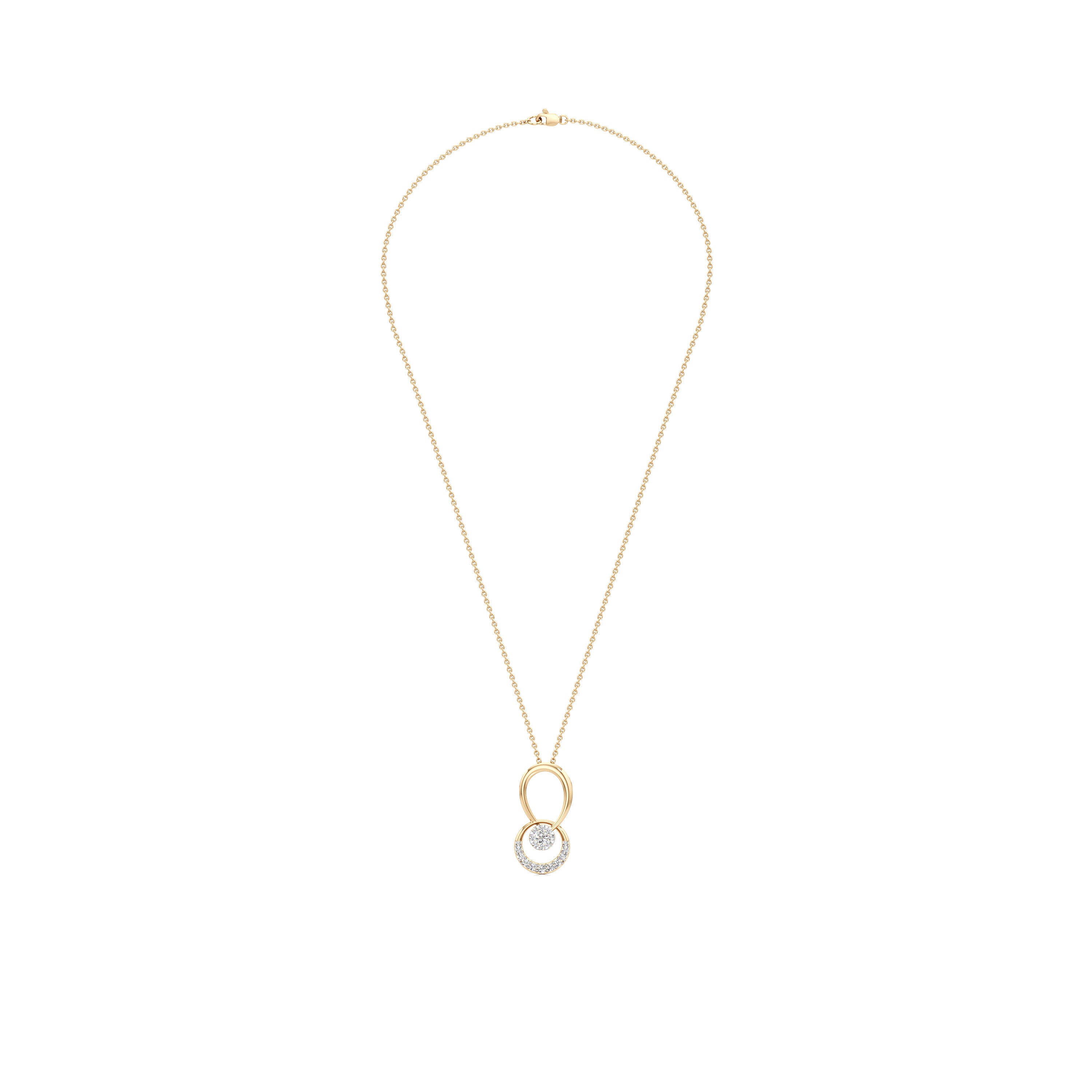A radiant symbol of strength and elegance. With its entwined circles, reminiscent of flickering flames, adorned with sparkling diamonds, this pendant is sure to ignite your passion for style. *The chain in the image is for illustrative purposes only.