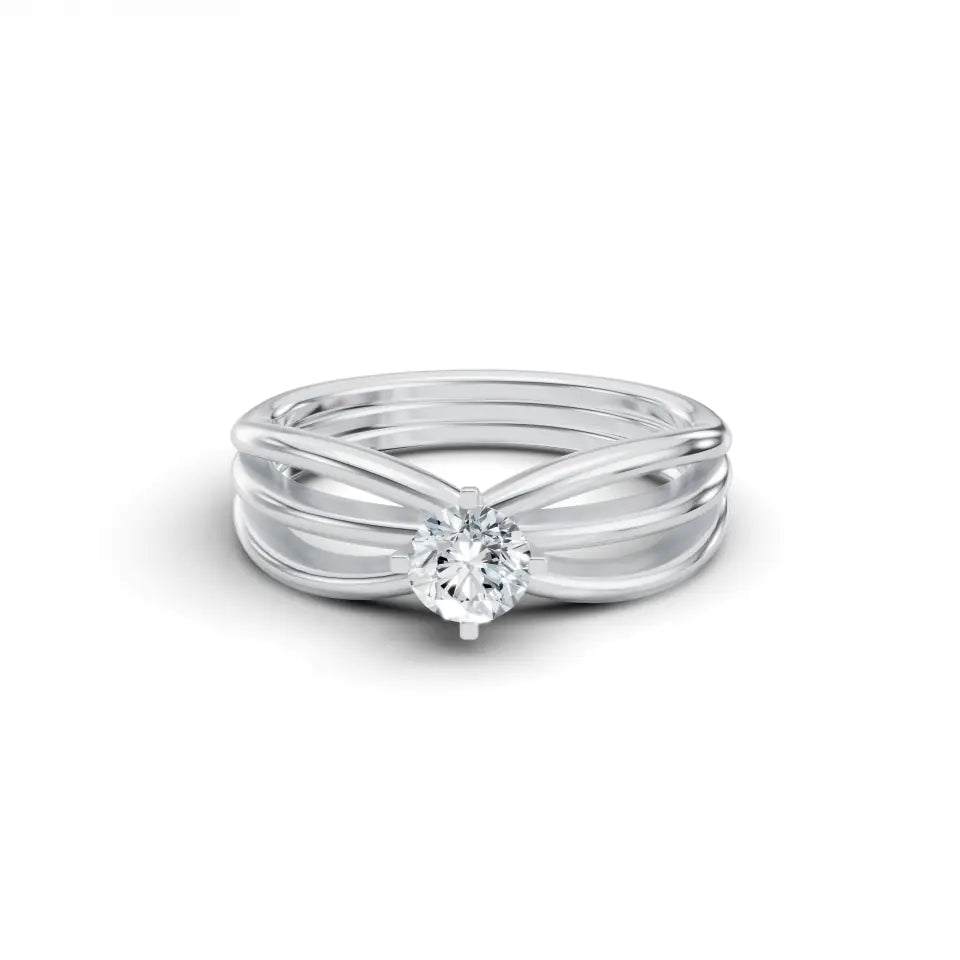 Embrace sophistication with our River Solitaire Diamond Ring—a captivating piece designed to elevate your engagement ensemble. Its unique three-lined design, solitaire at the center, adds a touch of individuality to your look.