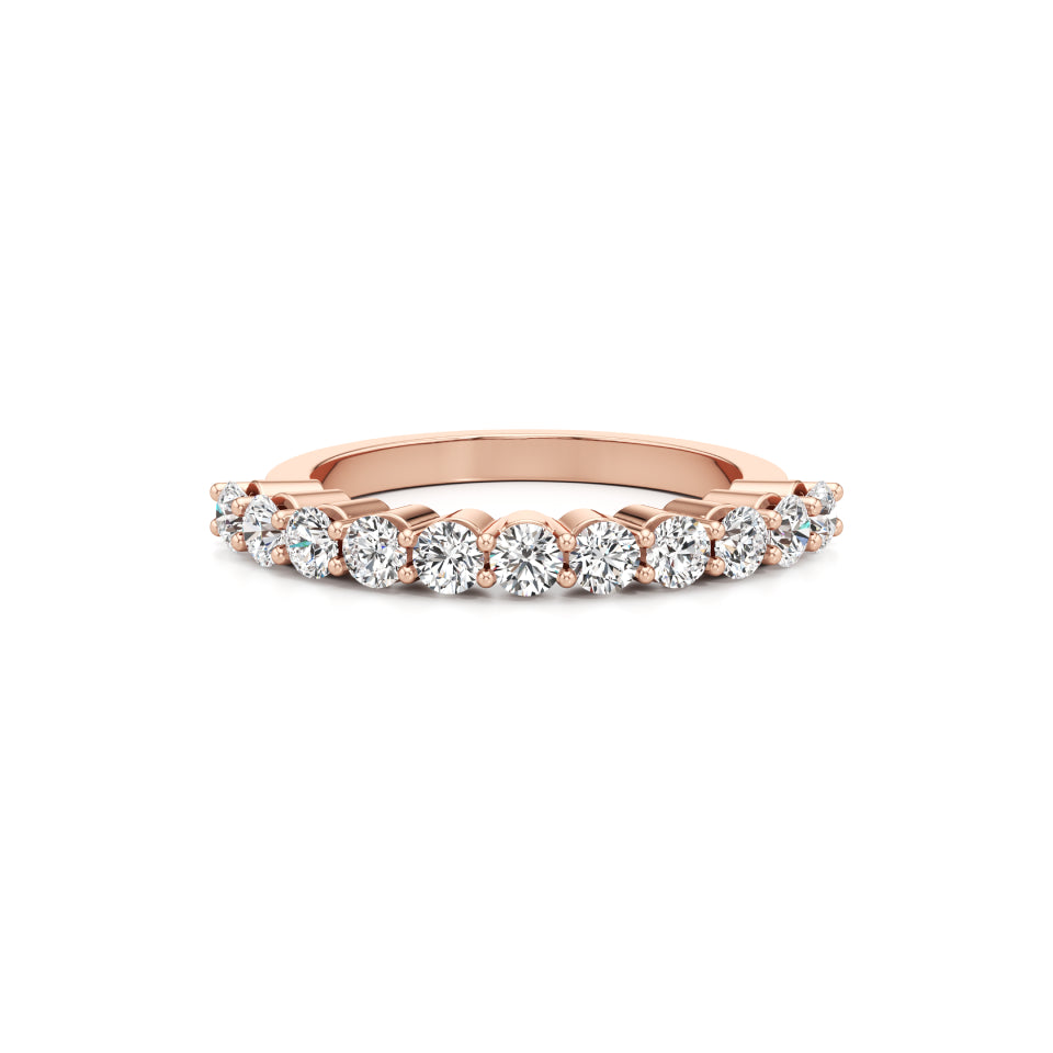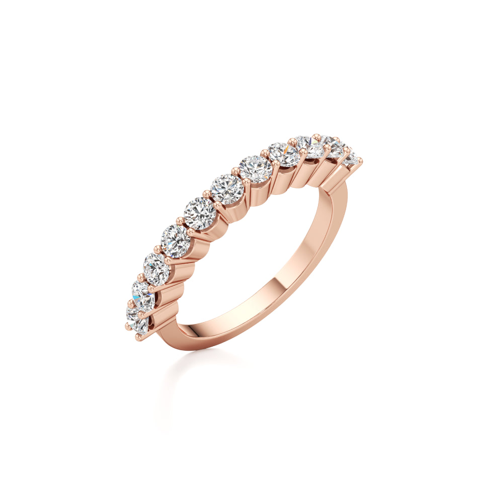 Make your engagement unforgettable with our 'Half Eternity Stacker' stackable ring. Adorned with stunning lab-grown diamonds, this elegant piece features a single line of diamonds, meticulously set in a secure prong setting.