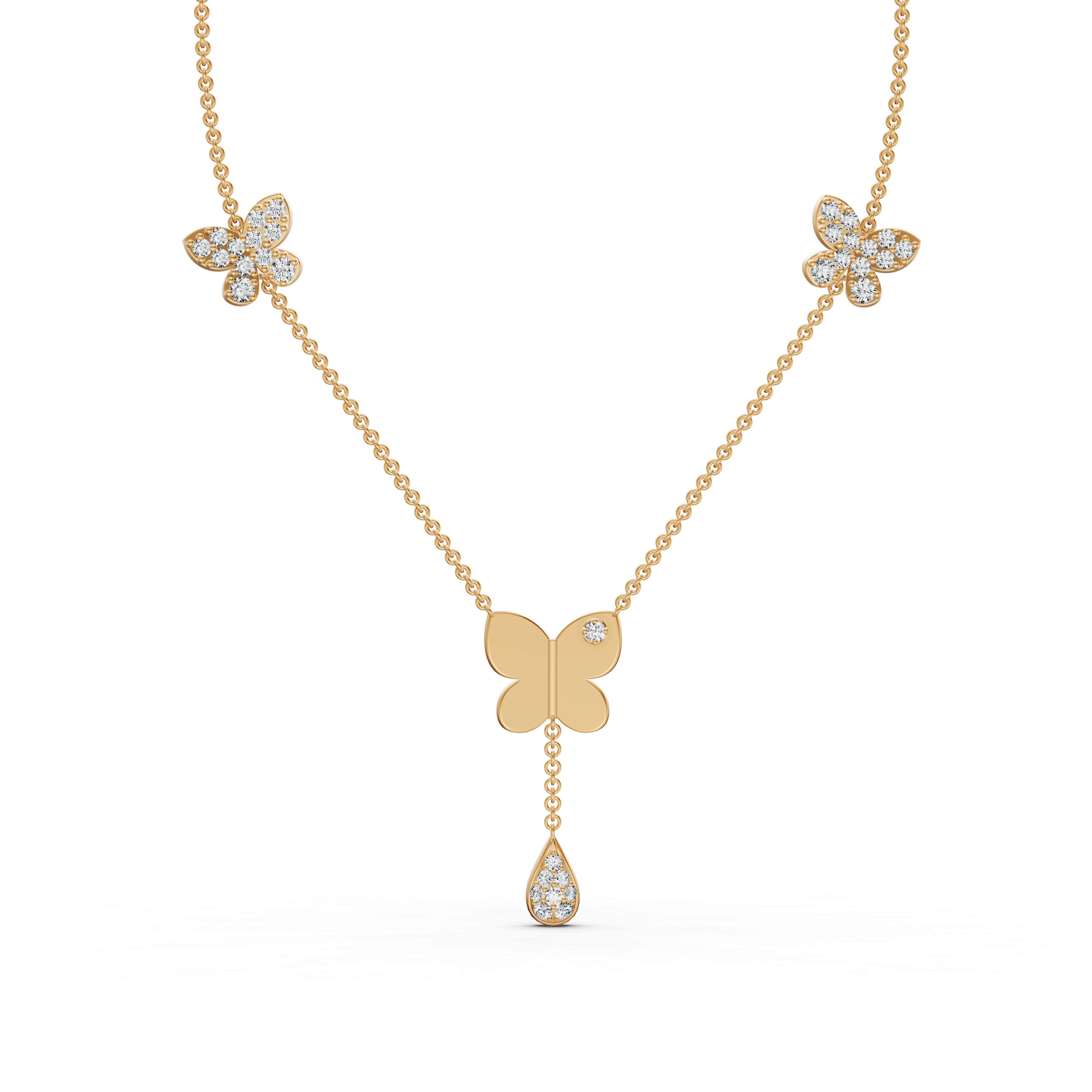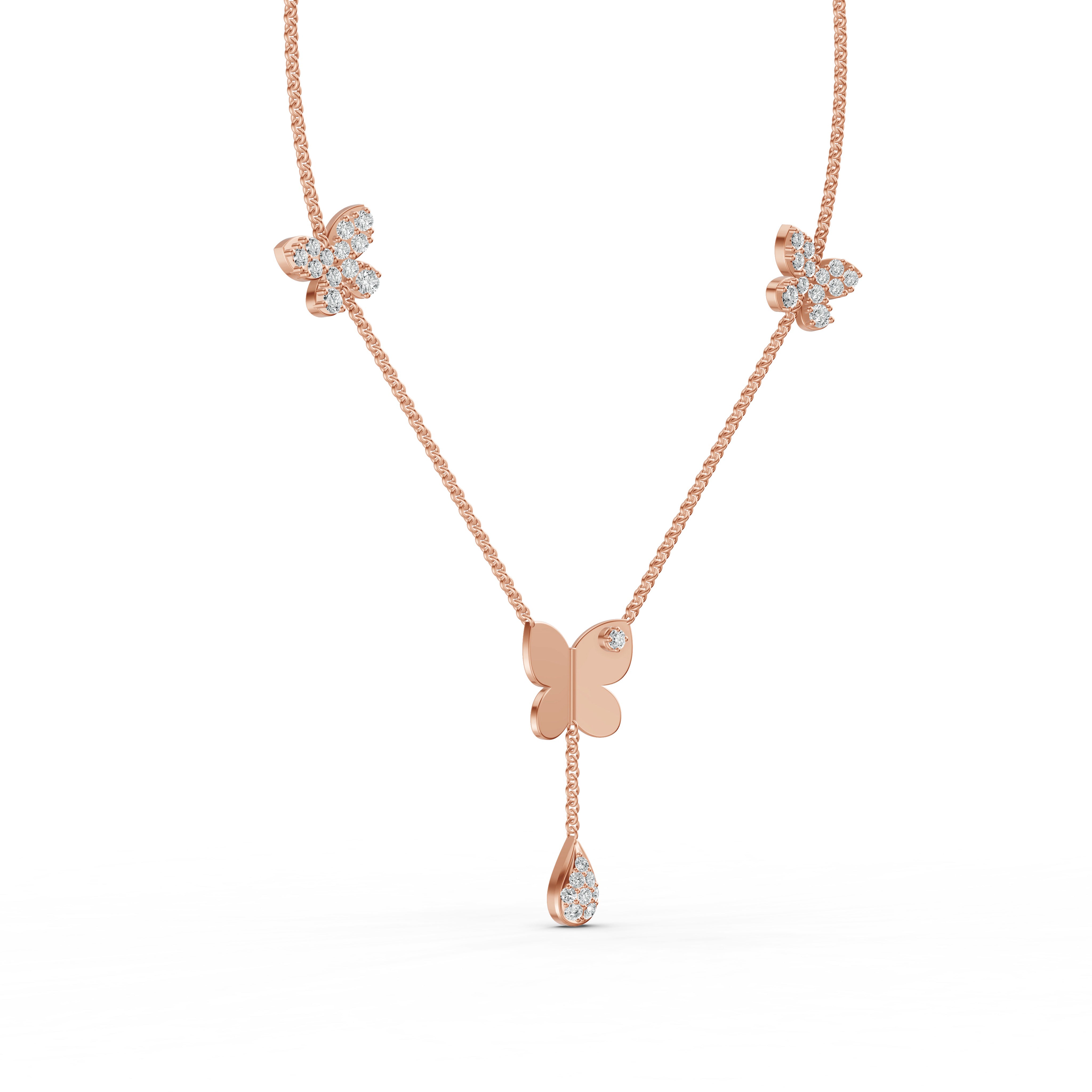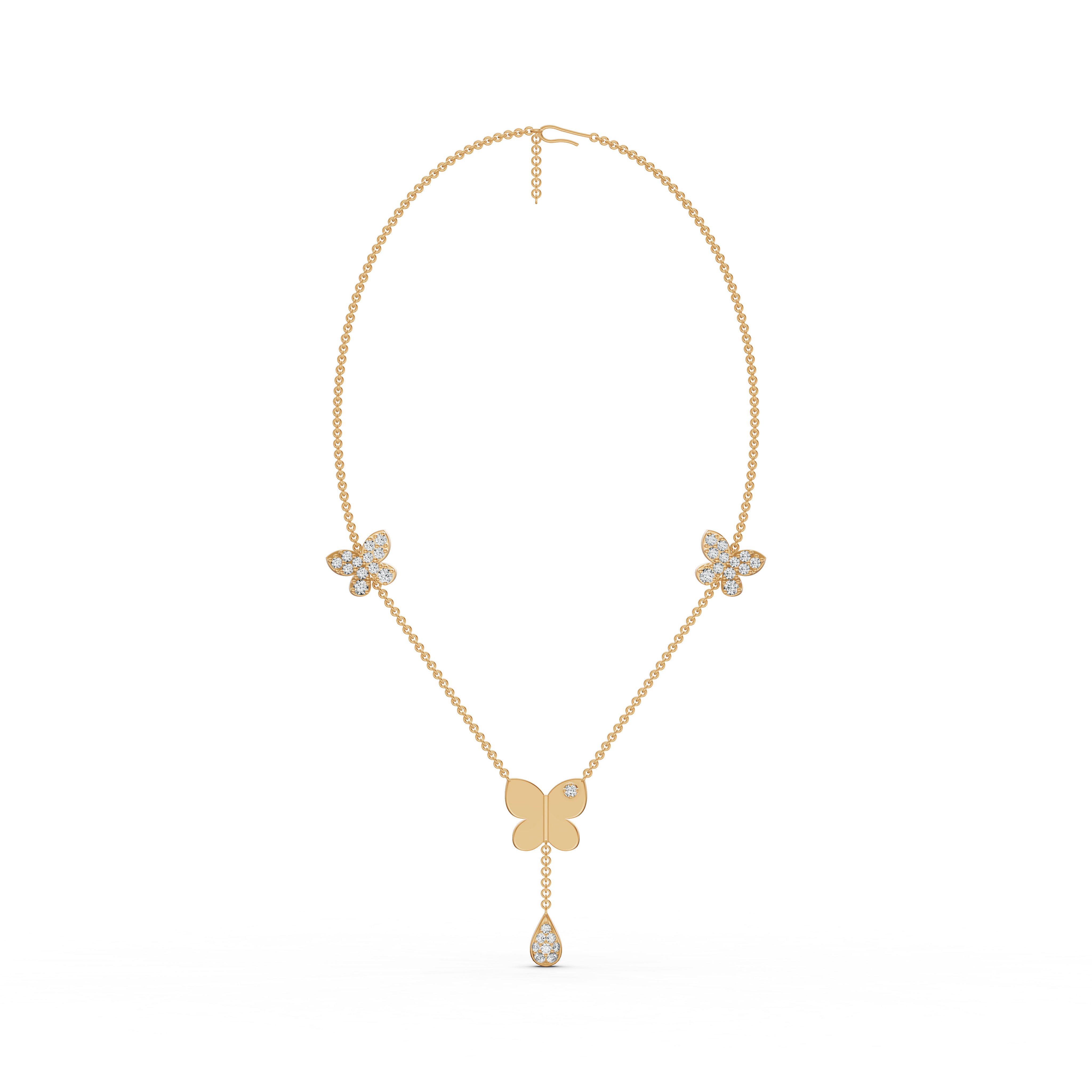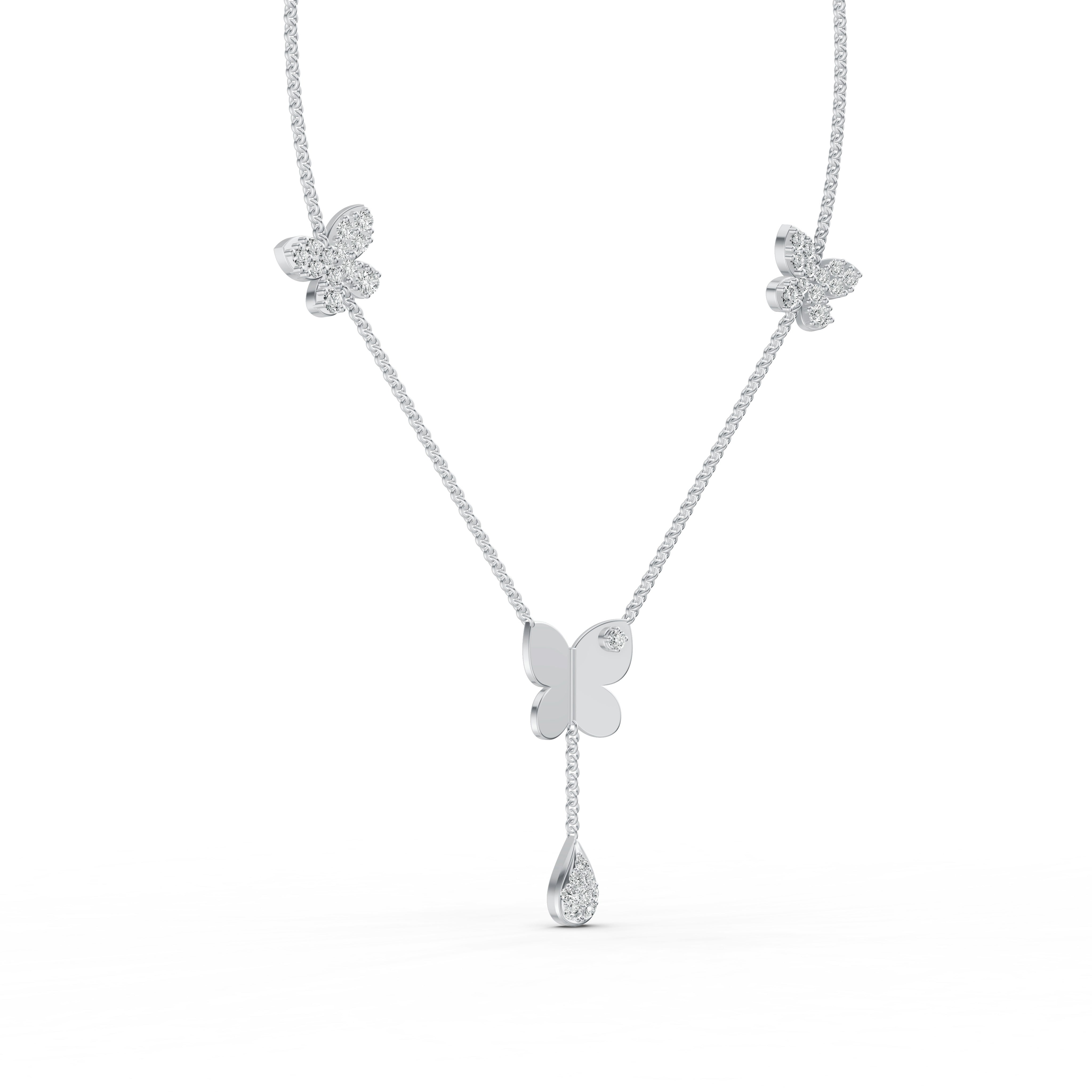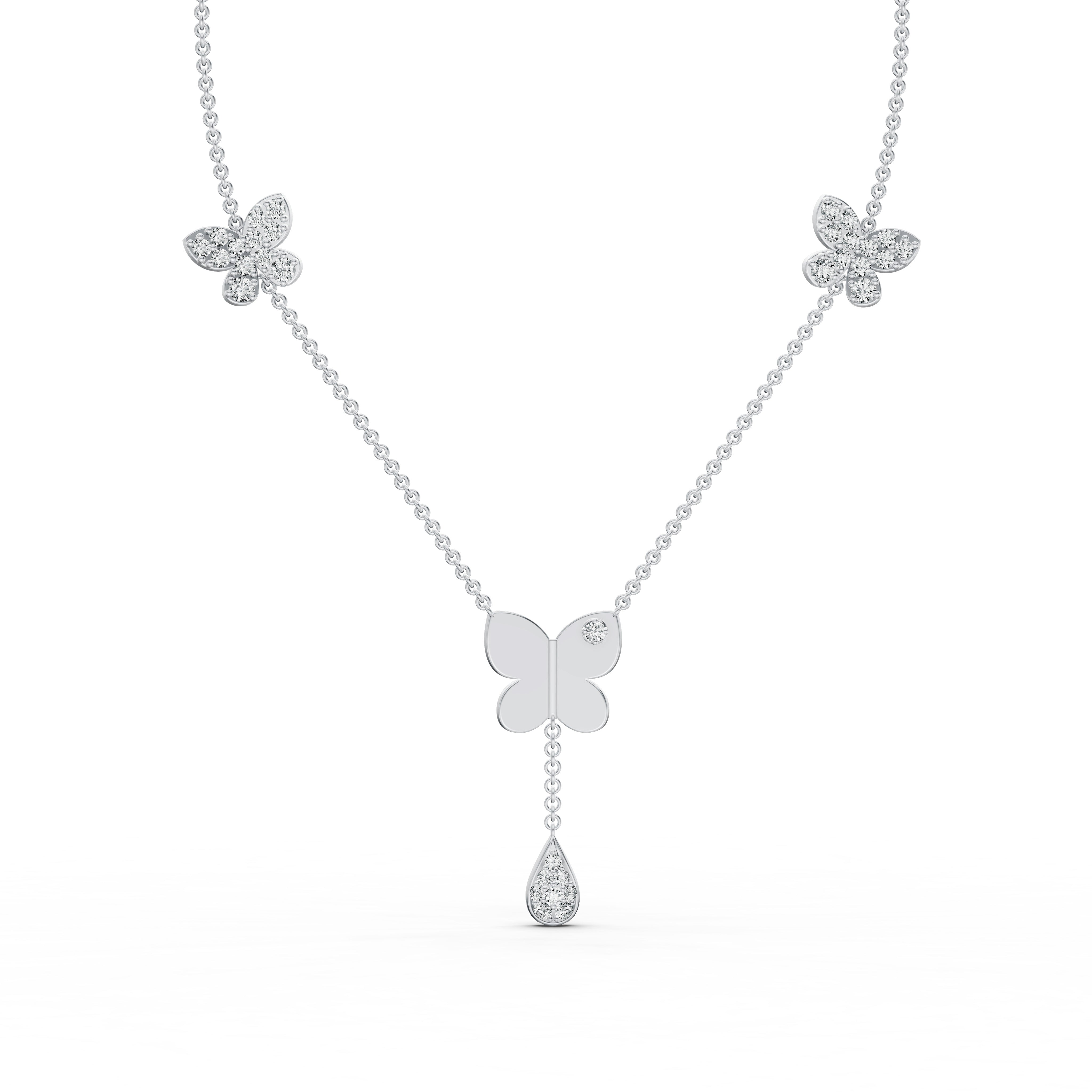 Indulge in the romance of spring with our Butterfly Trio Diamond Chain. This chain features a delightful design resembling a garden, each butterfly adorned with sparkling lab-grown diamonds. Add a touch of floral elegance to your workwear ensemble.