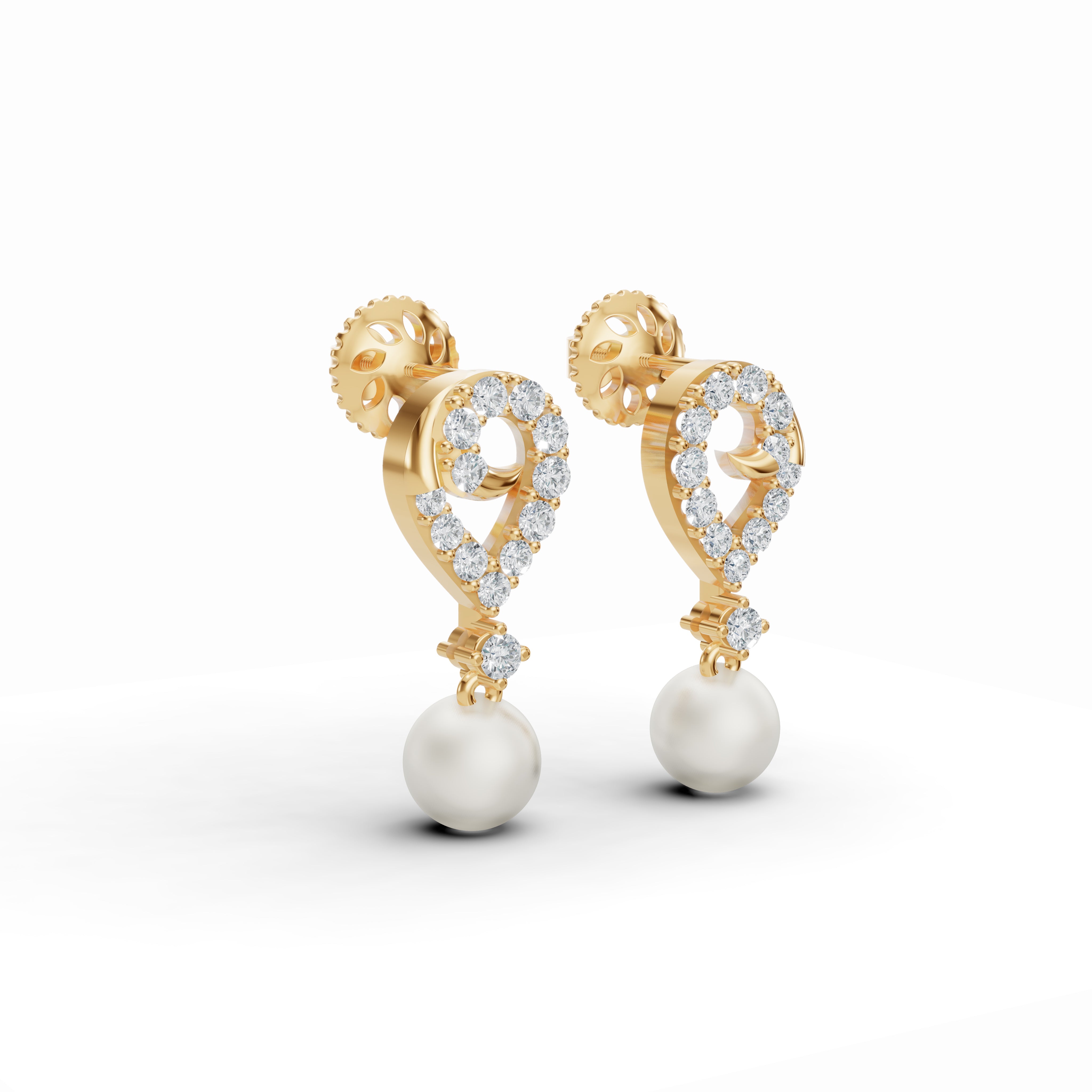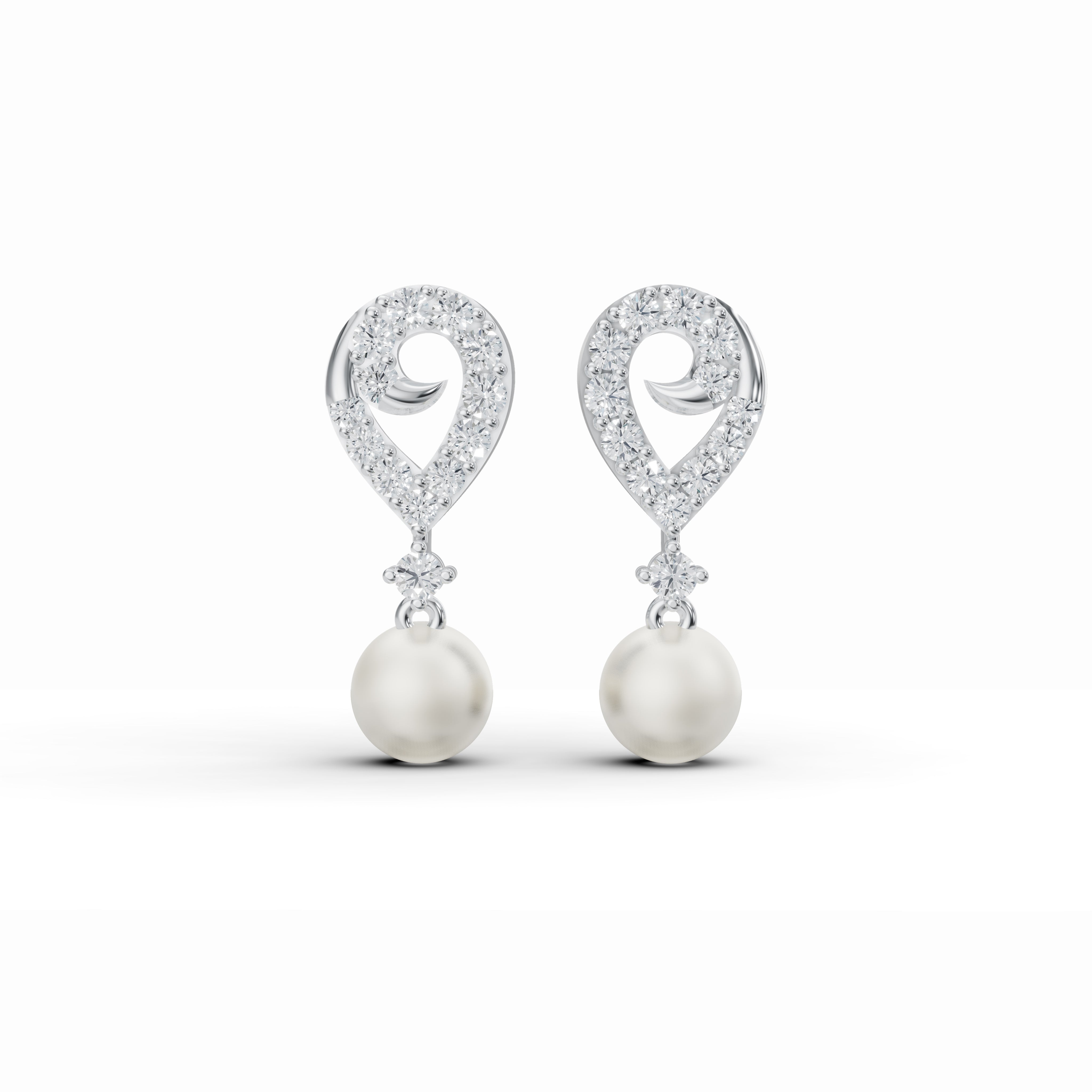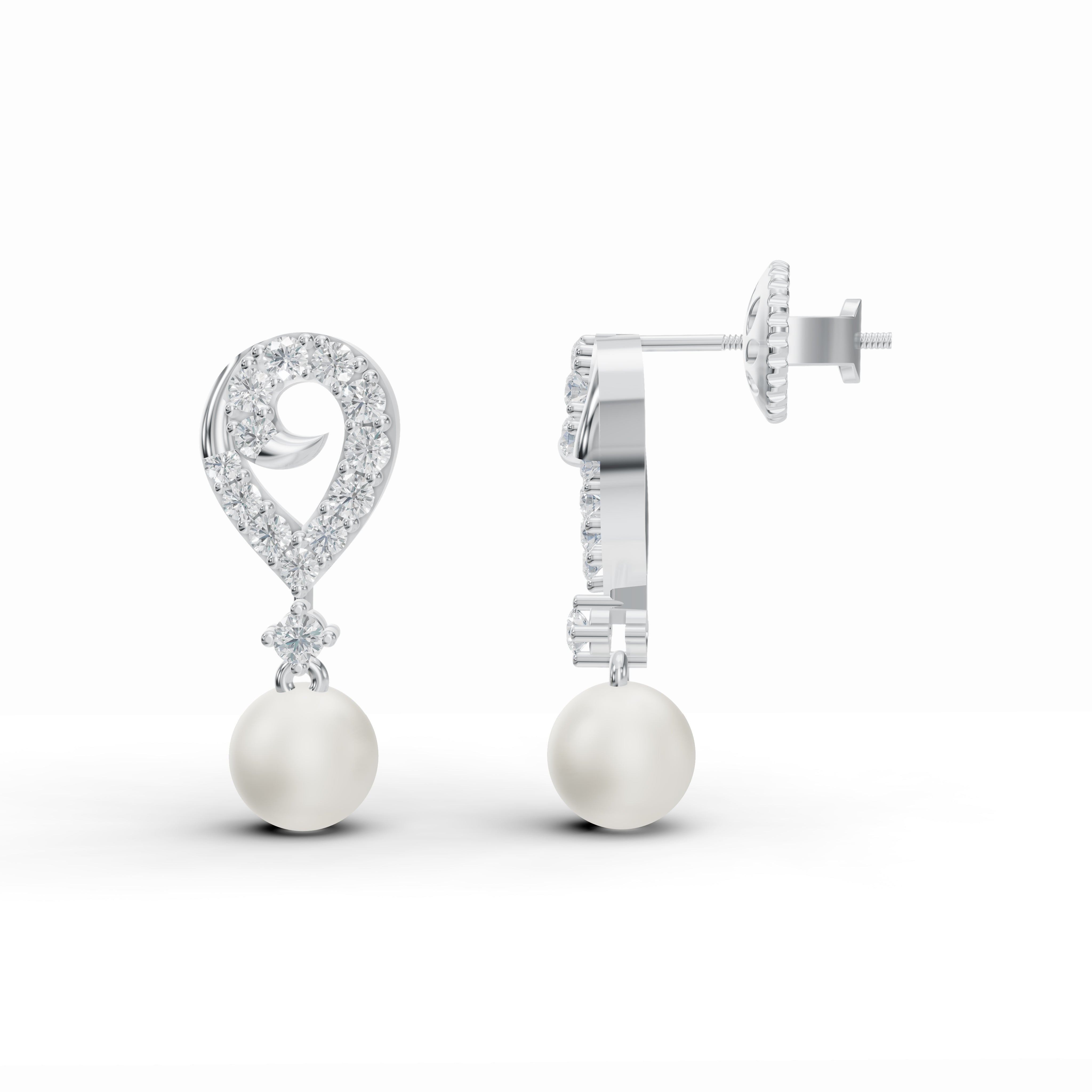 A classic pair of drop earrings featuring round lab diamonds in a secure prong setting and a luminous pearl drop. Set with sparkling diamonds, these lightweight earrings blend timeless elegance with delicate sparkle.