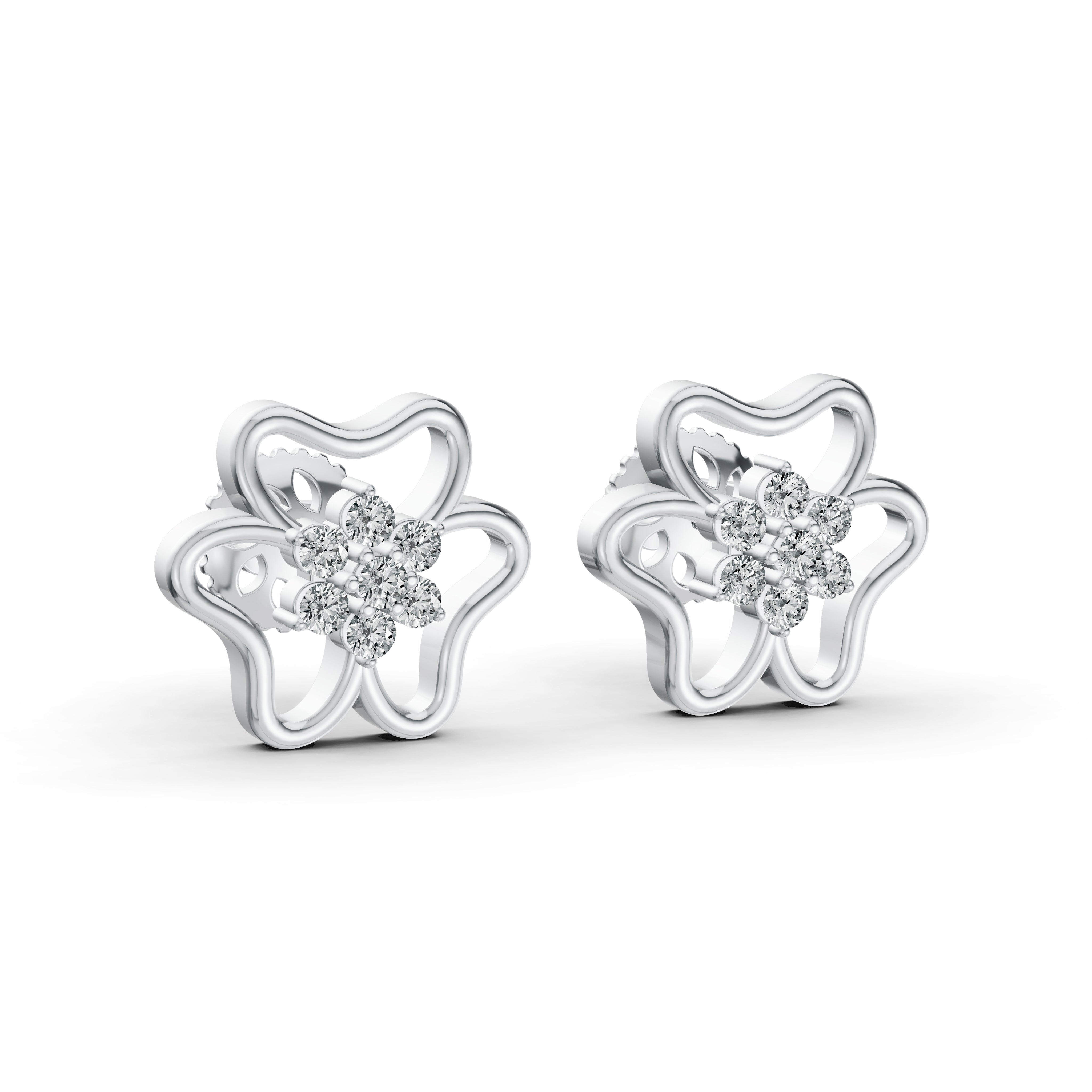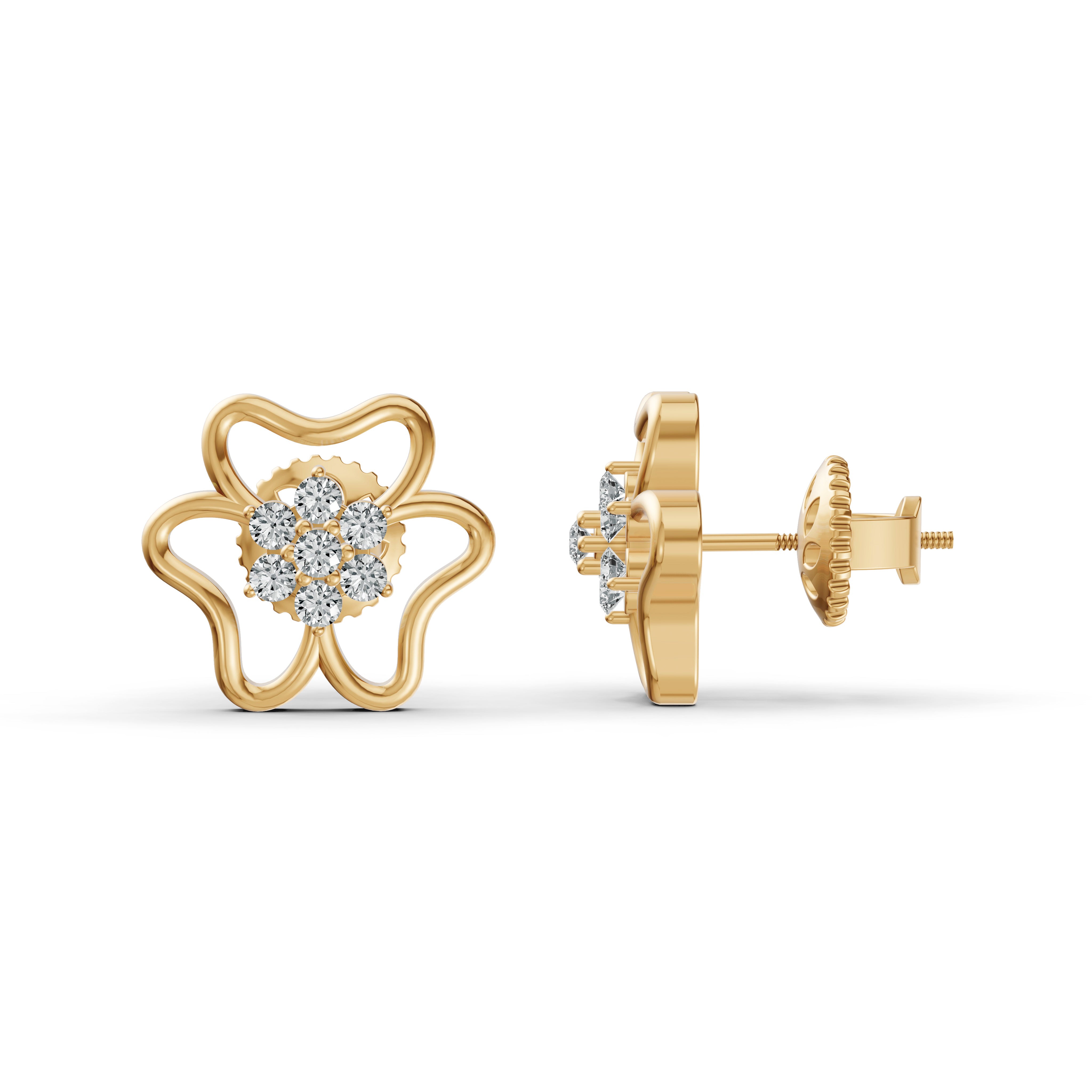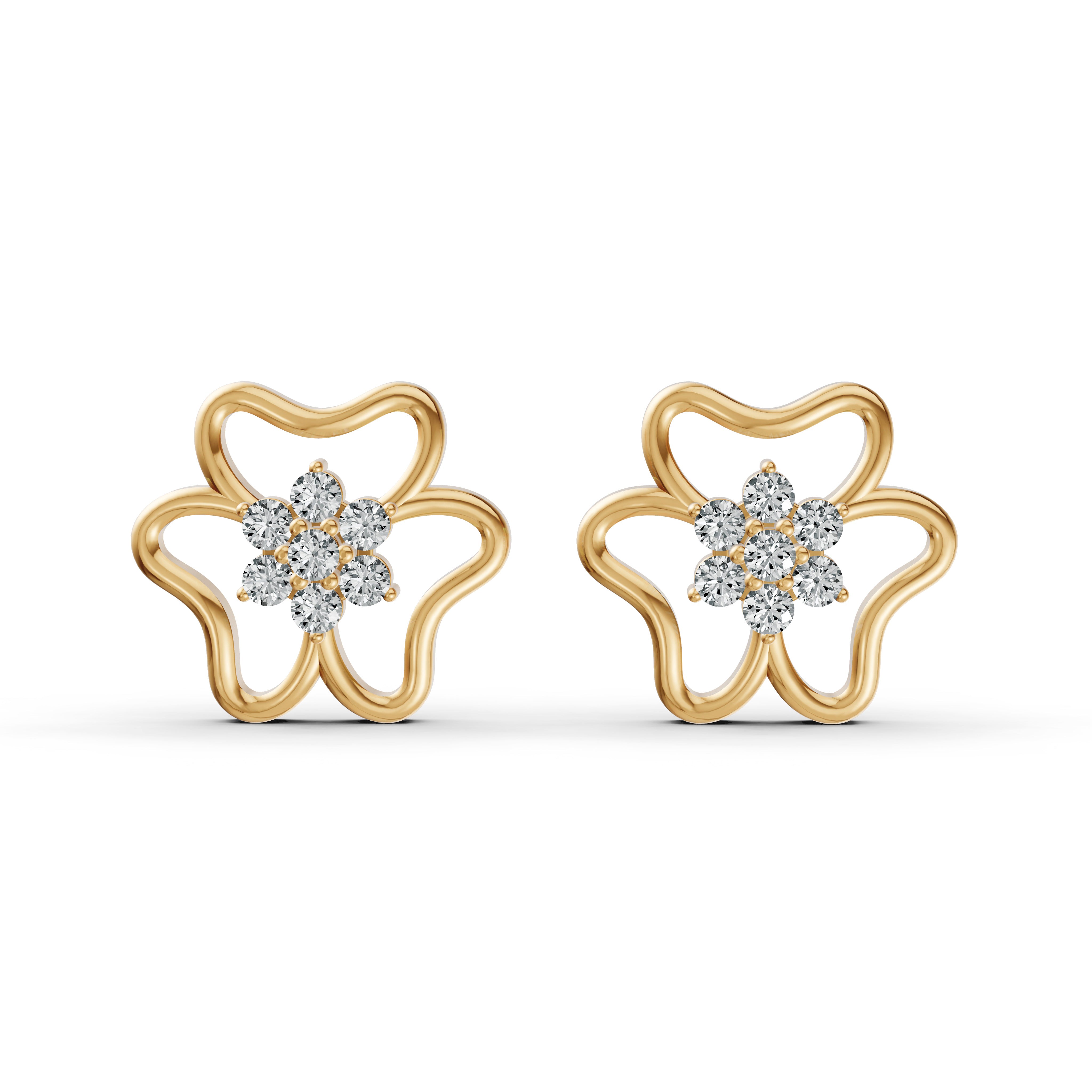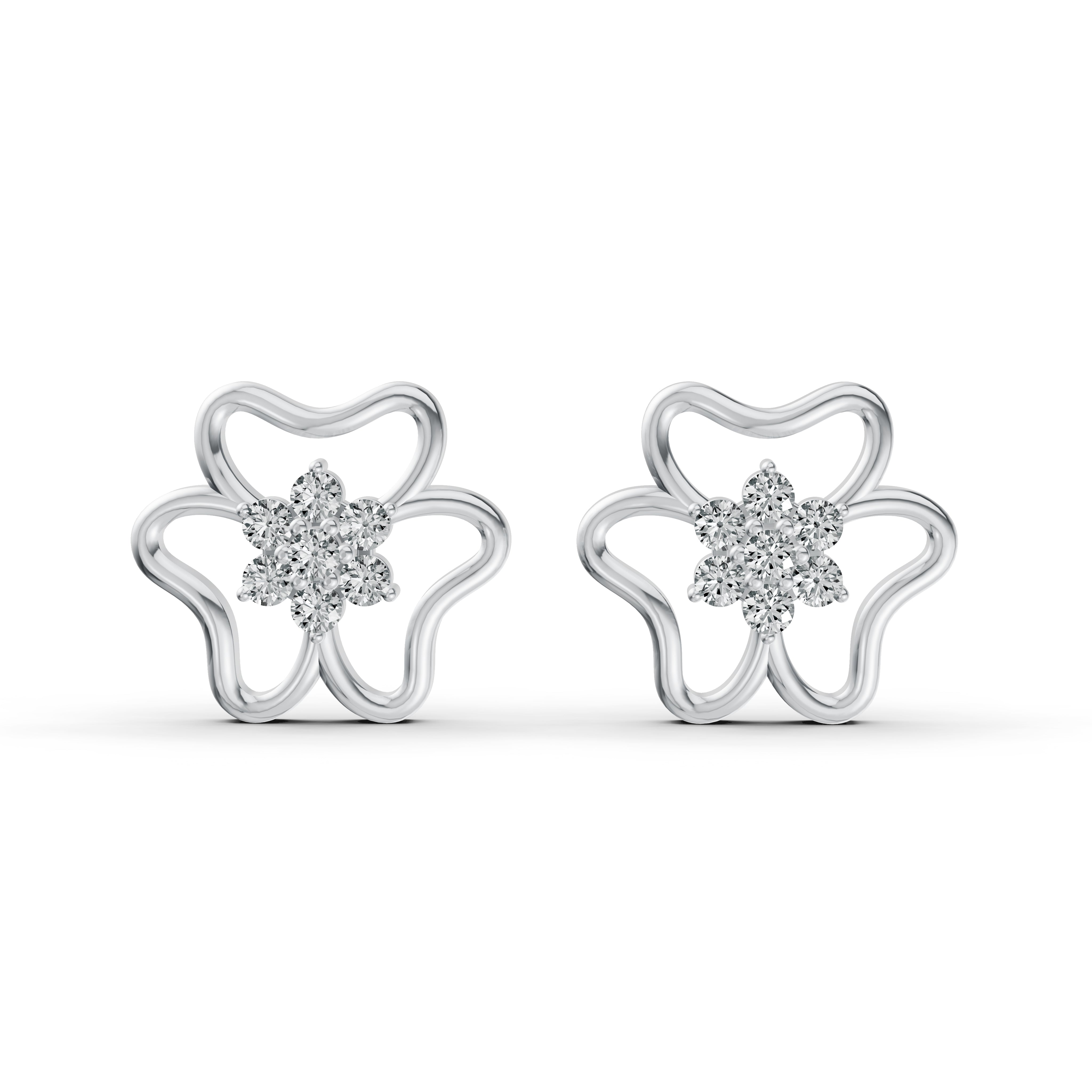 Delicate flower-shaped stud earrings adorned with lab-grown diamonds. A timeless piece that adds charm and sparkle to any look.