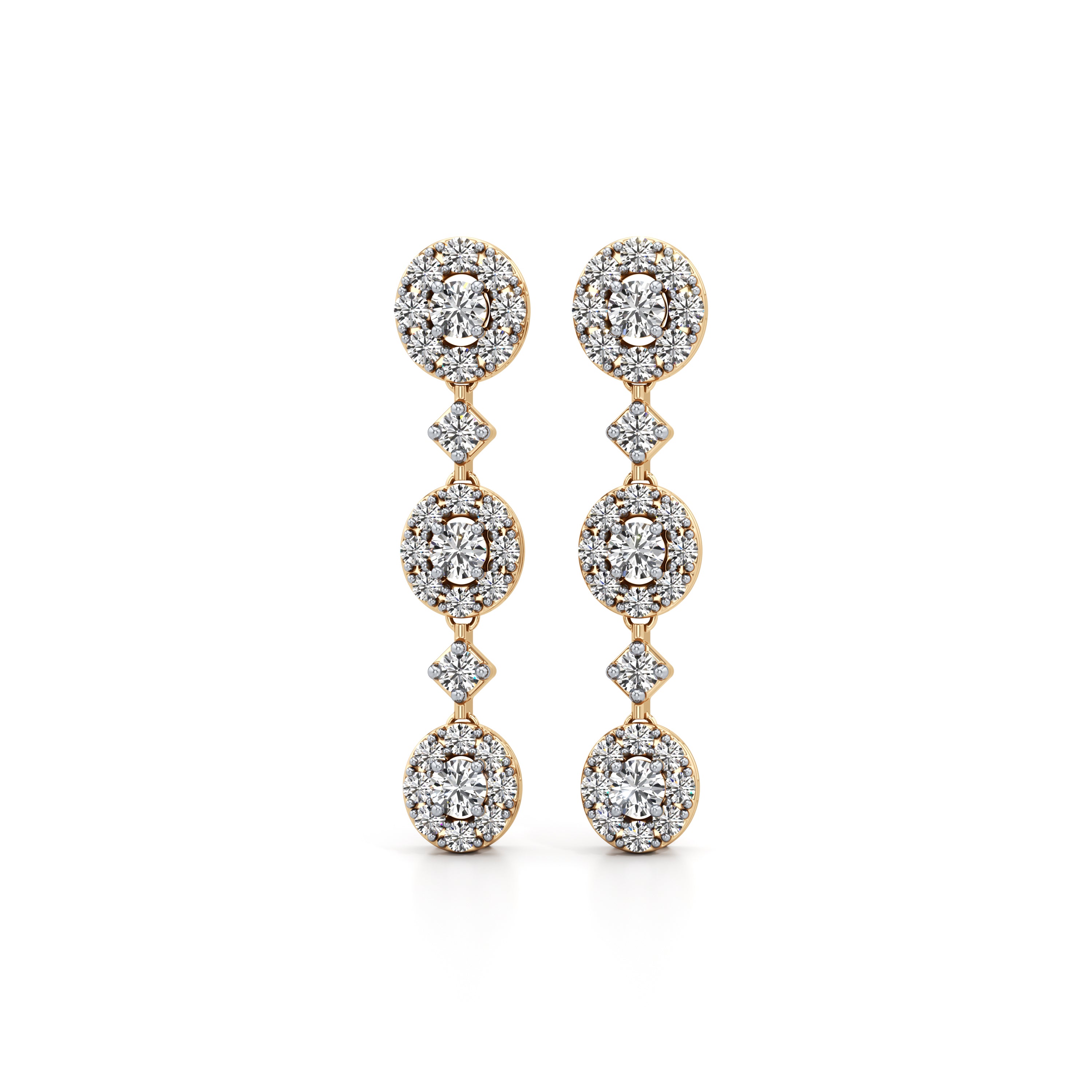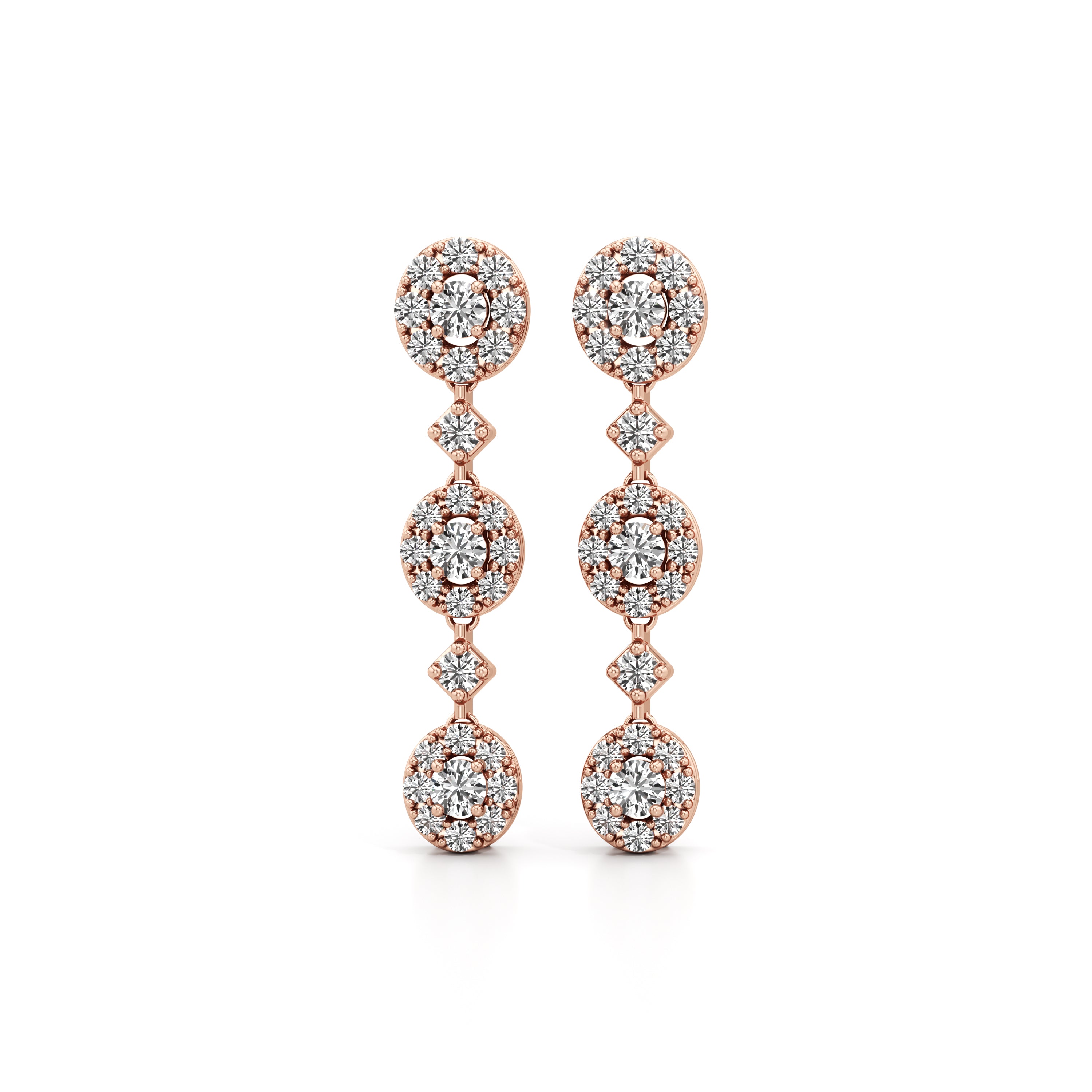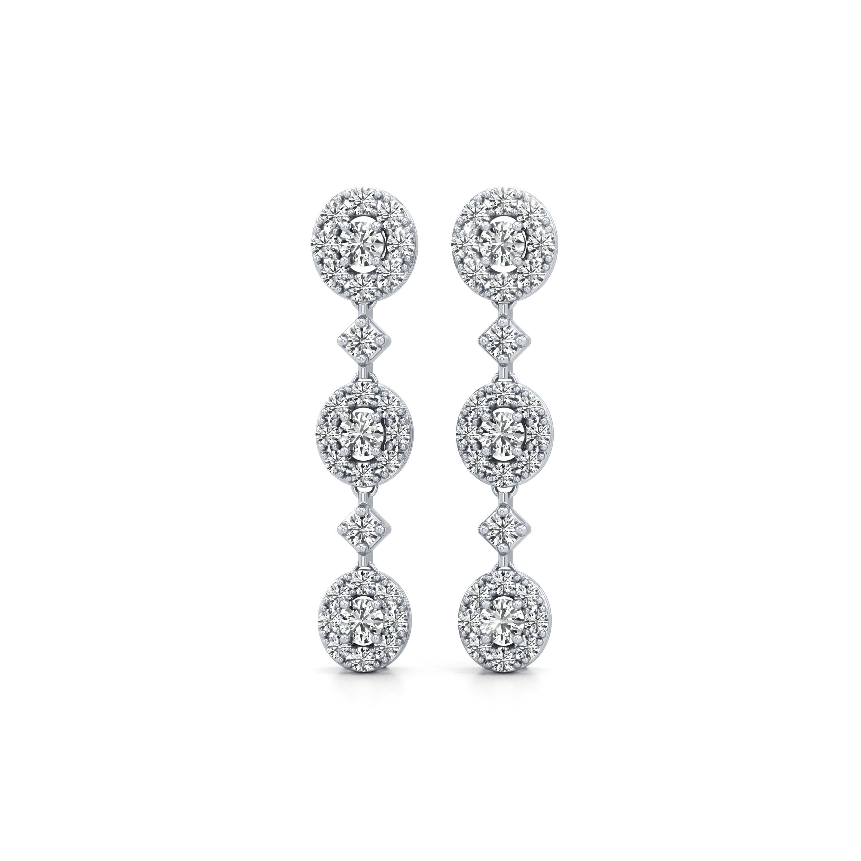 Linked Halo Drop Diamond Earrings