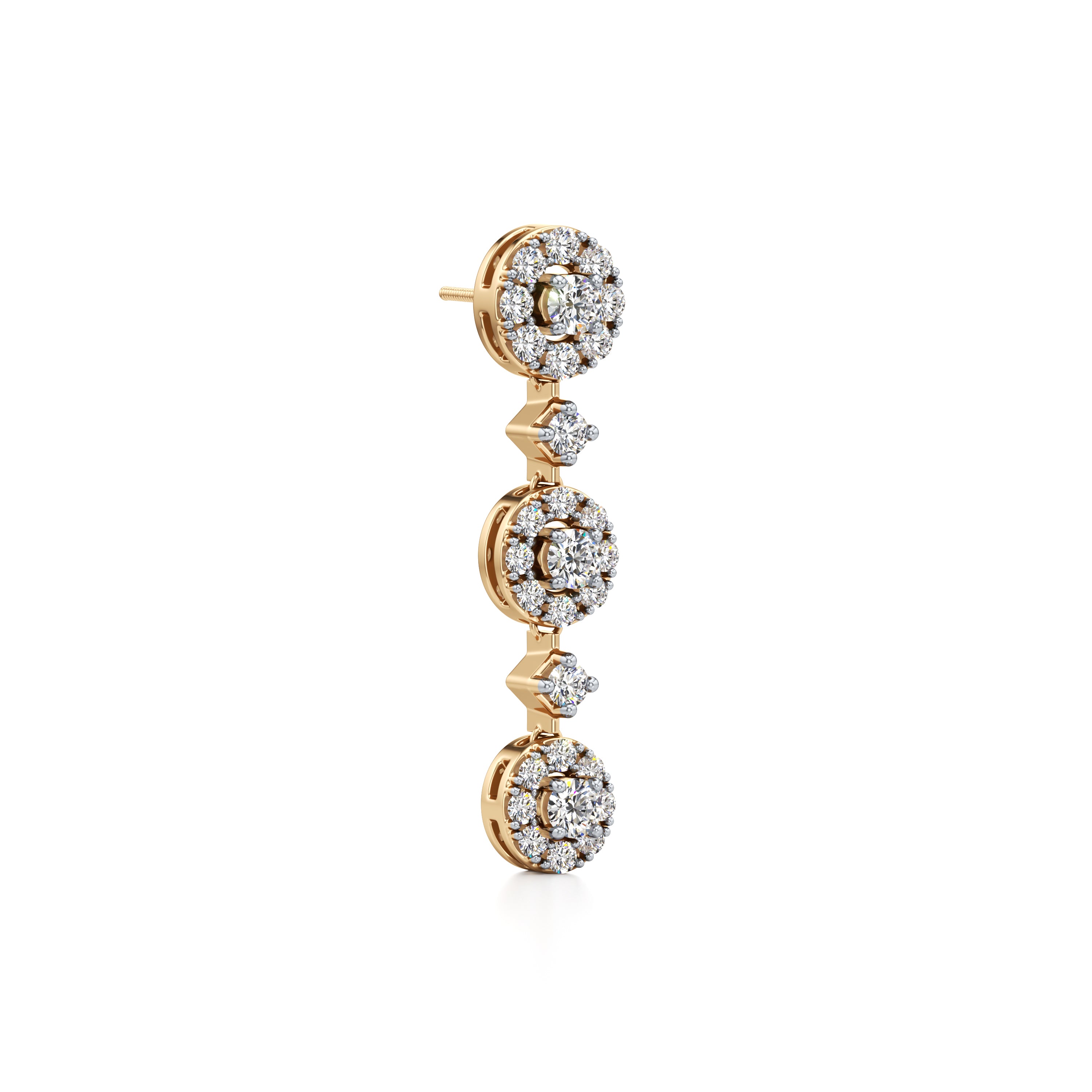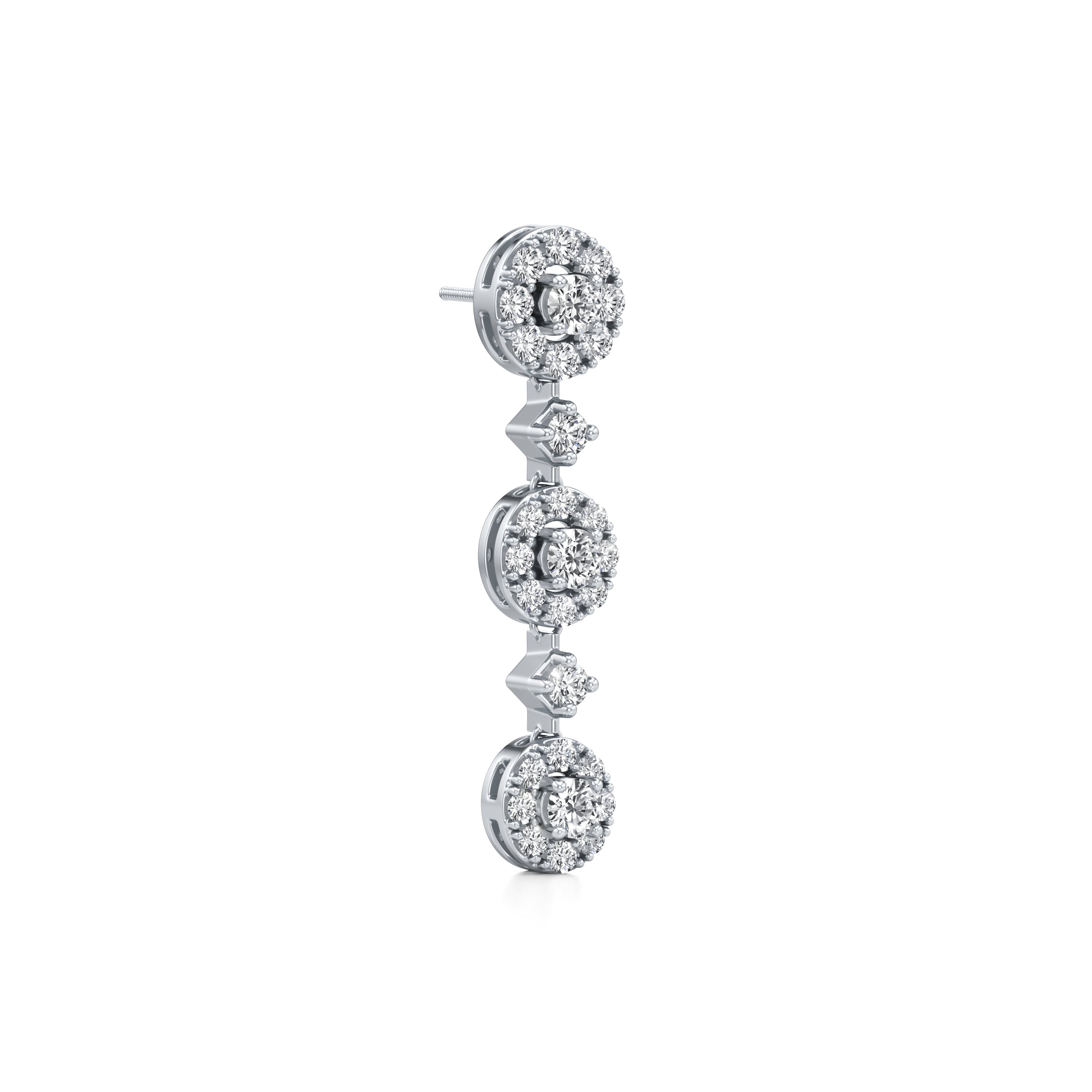 Indulge in casual elegance with our 'Linked Halo Drop' earrings, adorned with stunning lab-grown diamonds. These exquisite earrings feature three halo drop designs, each delicately crafted and secured in prong settings for enduring brilliance.