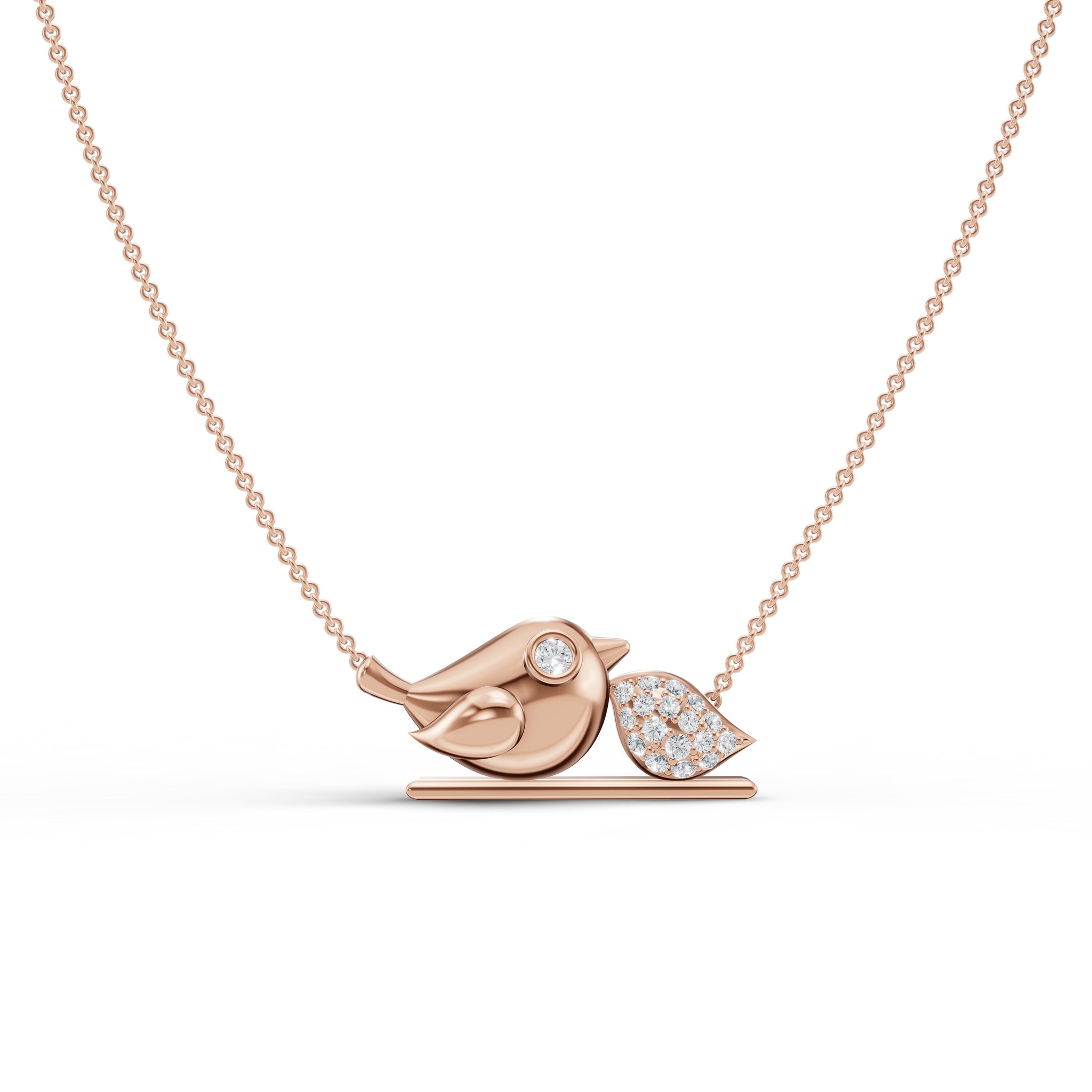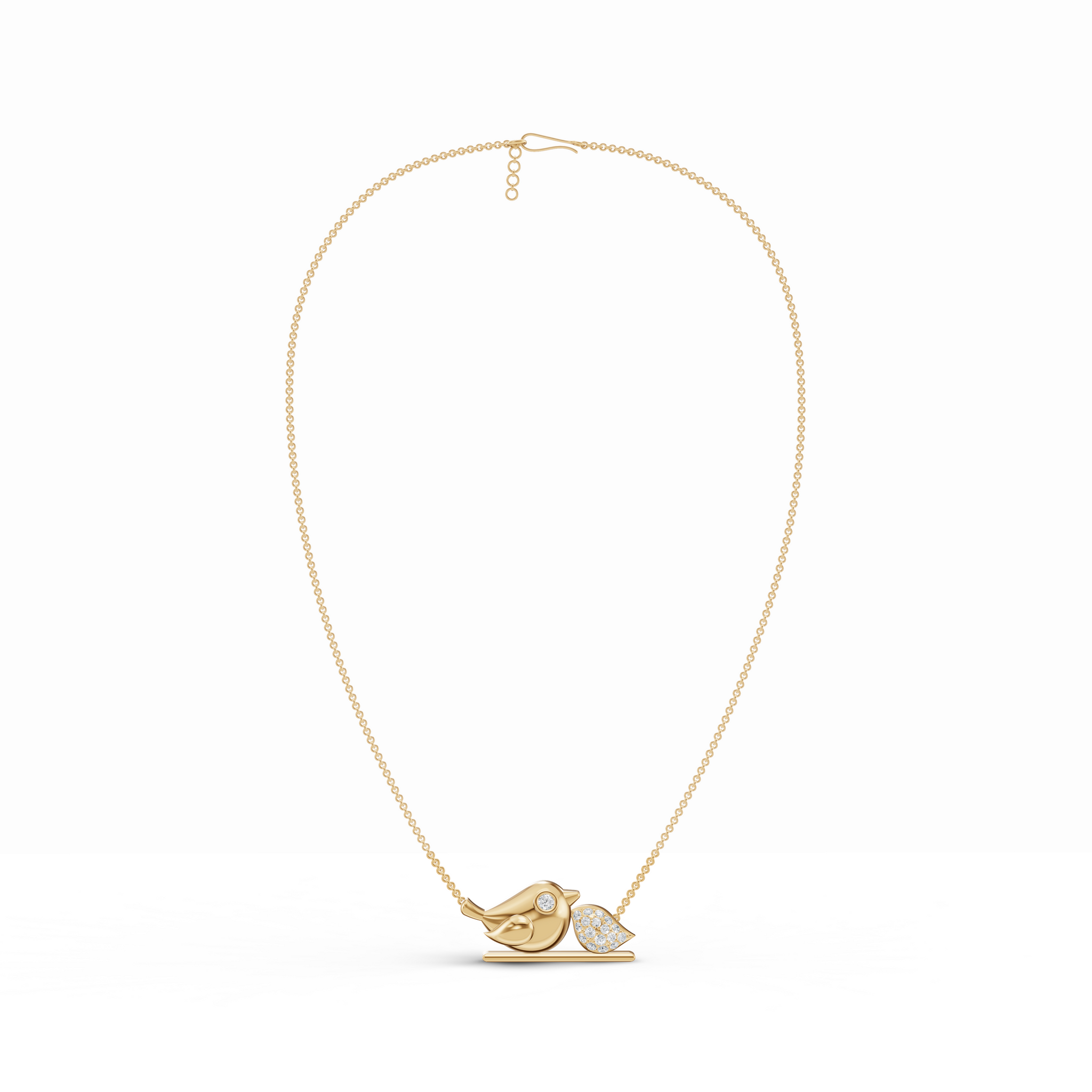 The Little Bird Diamond Pendant with Chain features a charming bird motif accented with lab-grown diamonds. Crafted in gold, this 18-inch adjustable chain adds a touch of playful elegance to any look.