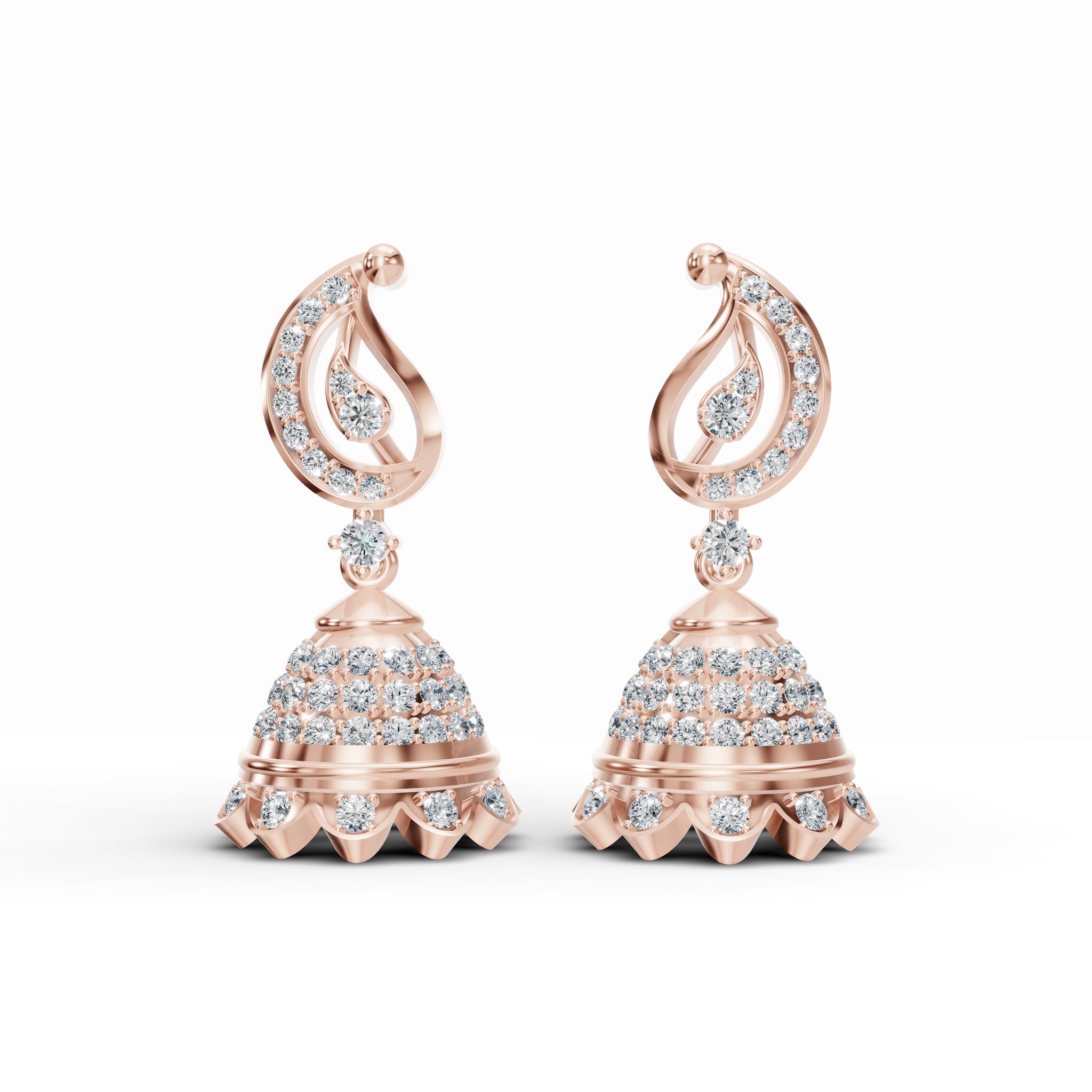 Paisley Motif Diamond Jhumka Earrings