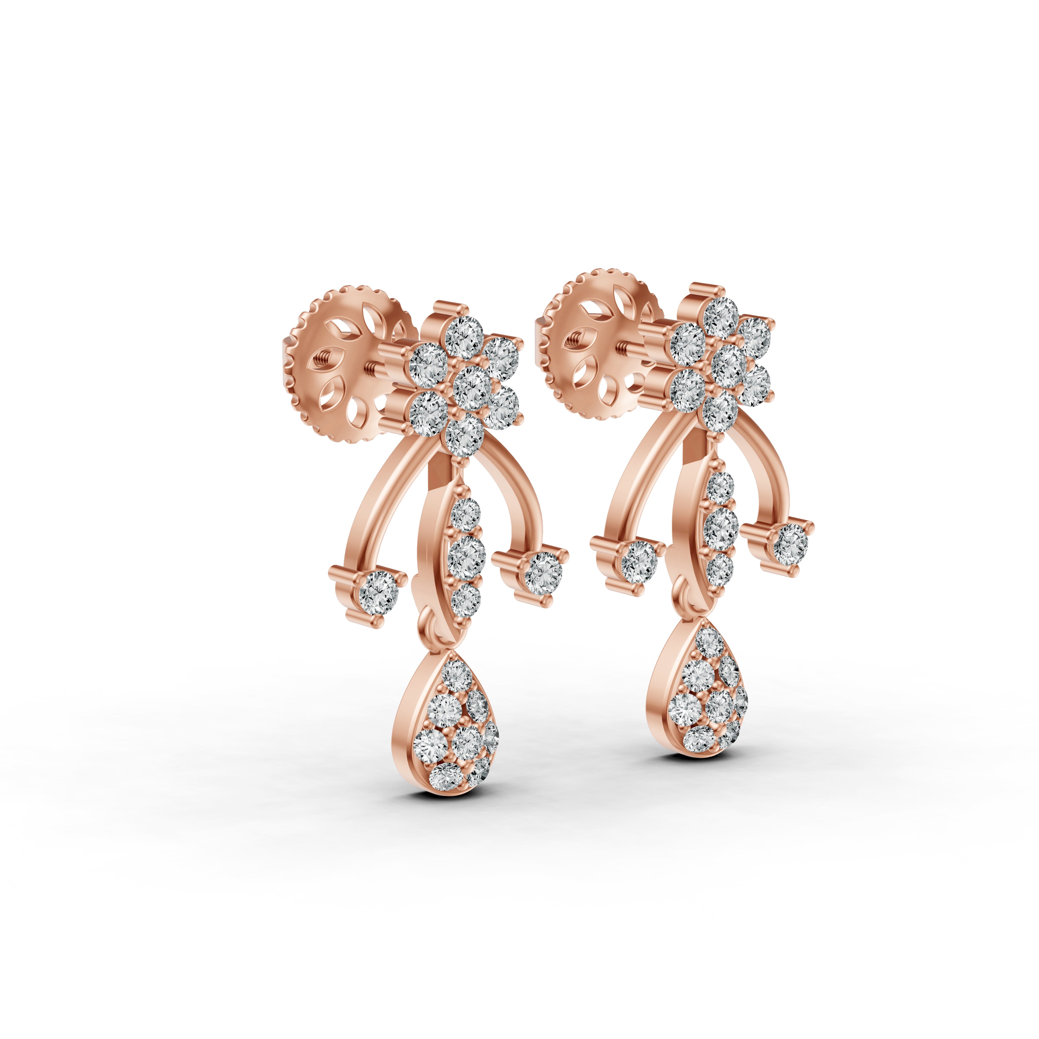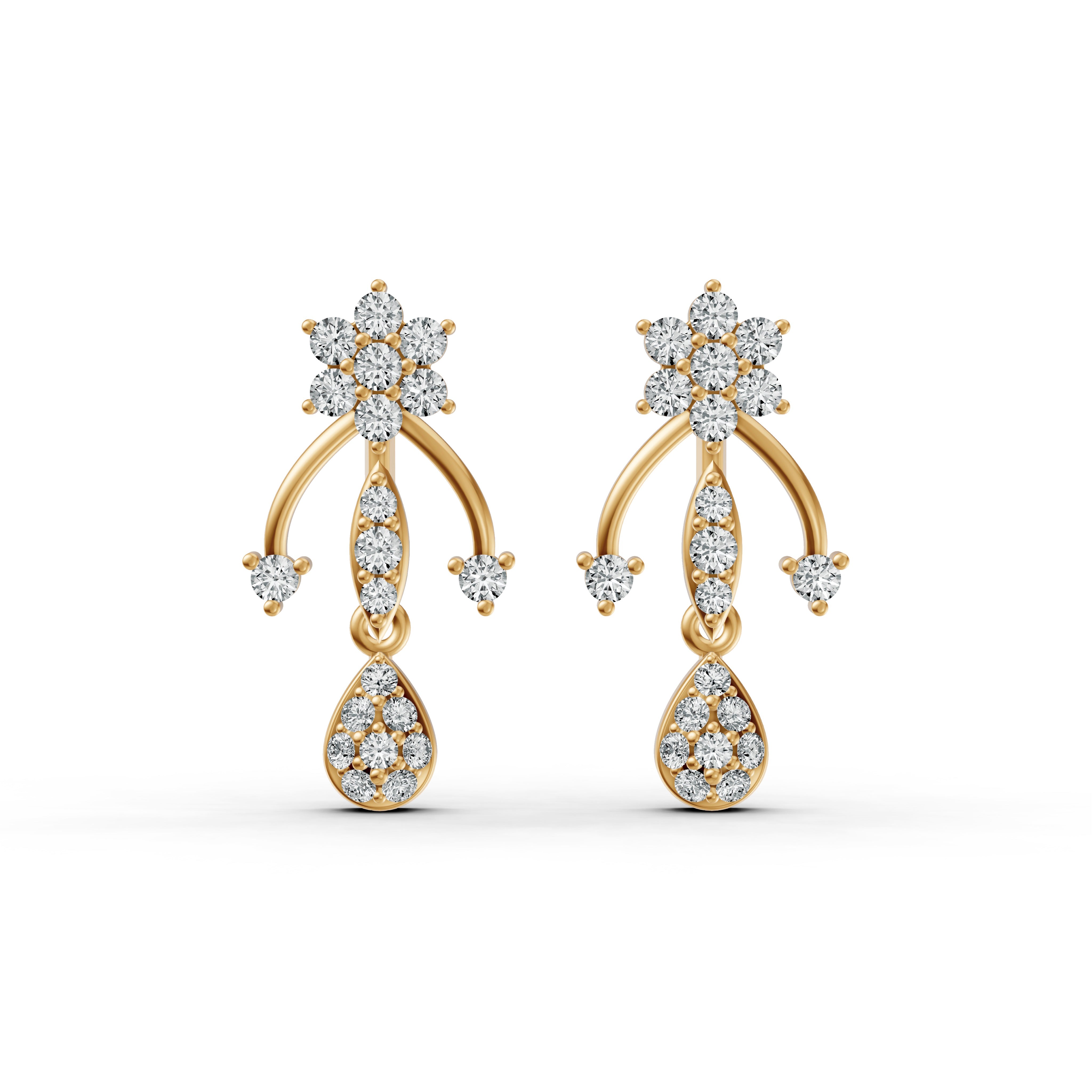 Elegant diamond earrings featuring star motifs and teardrop accents, crafted with sparkling lab-grown diamonds for a celestial charm.