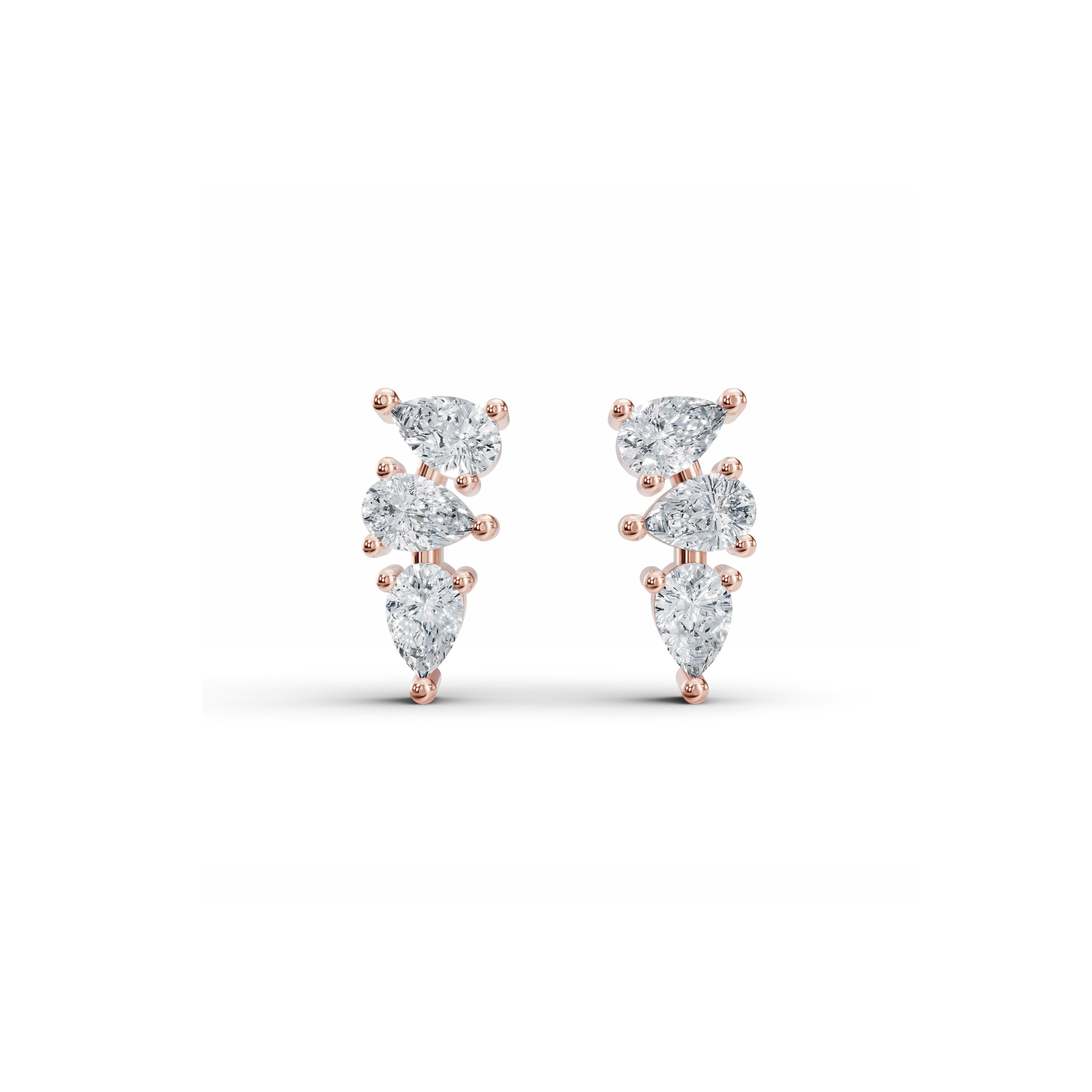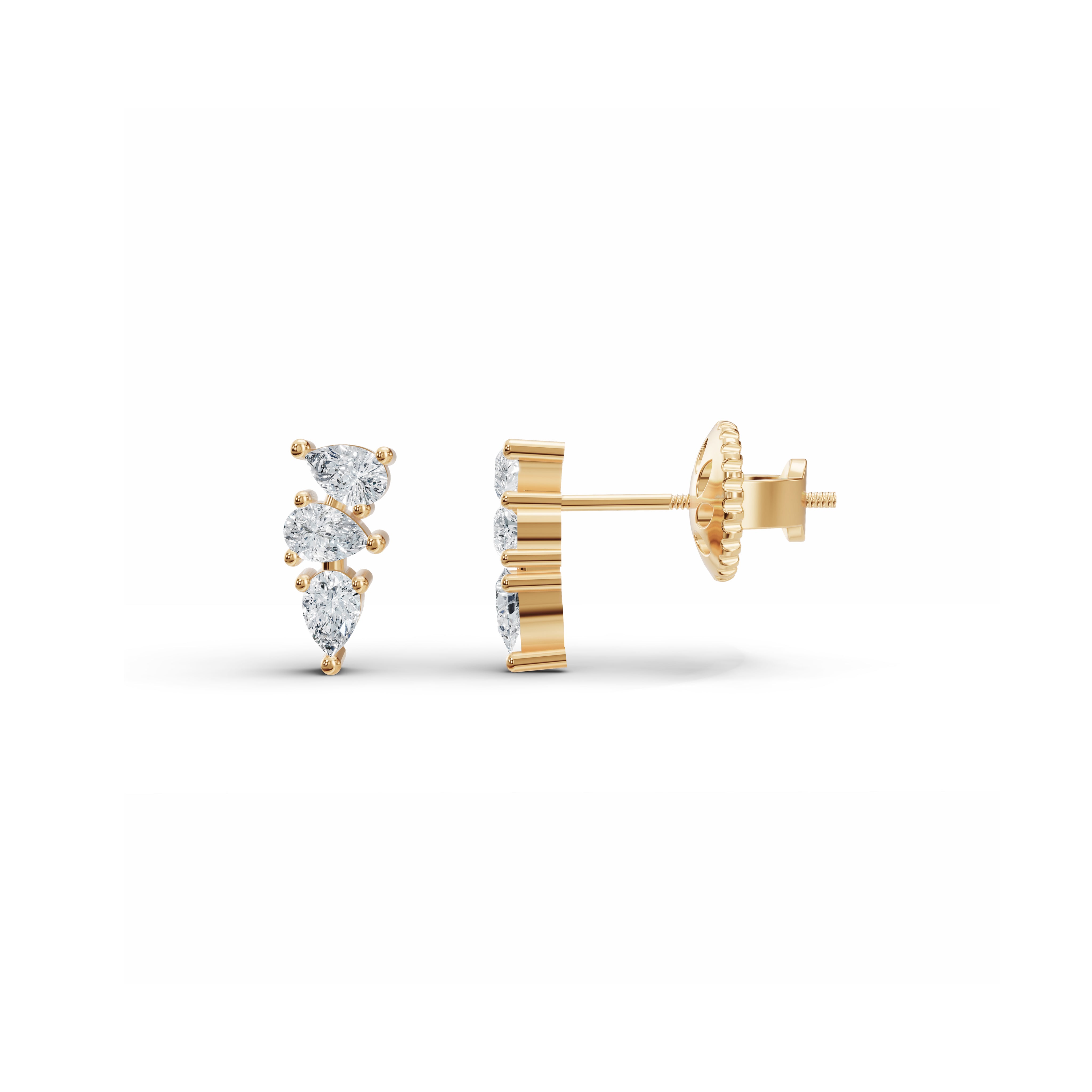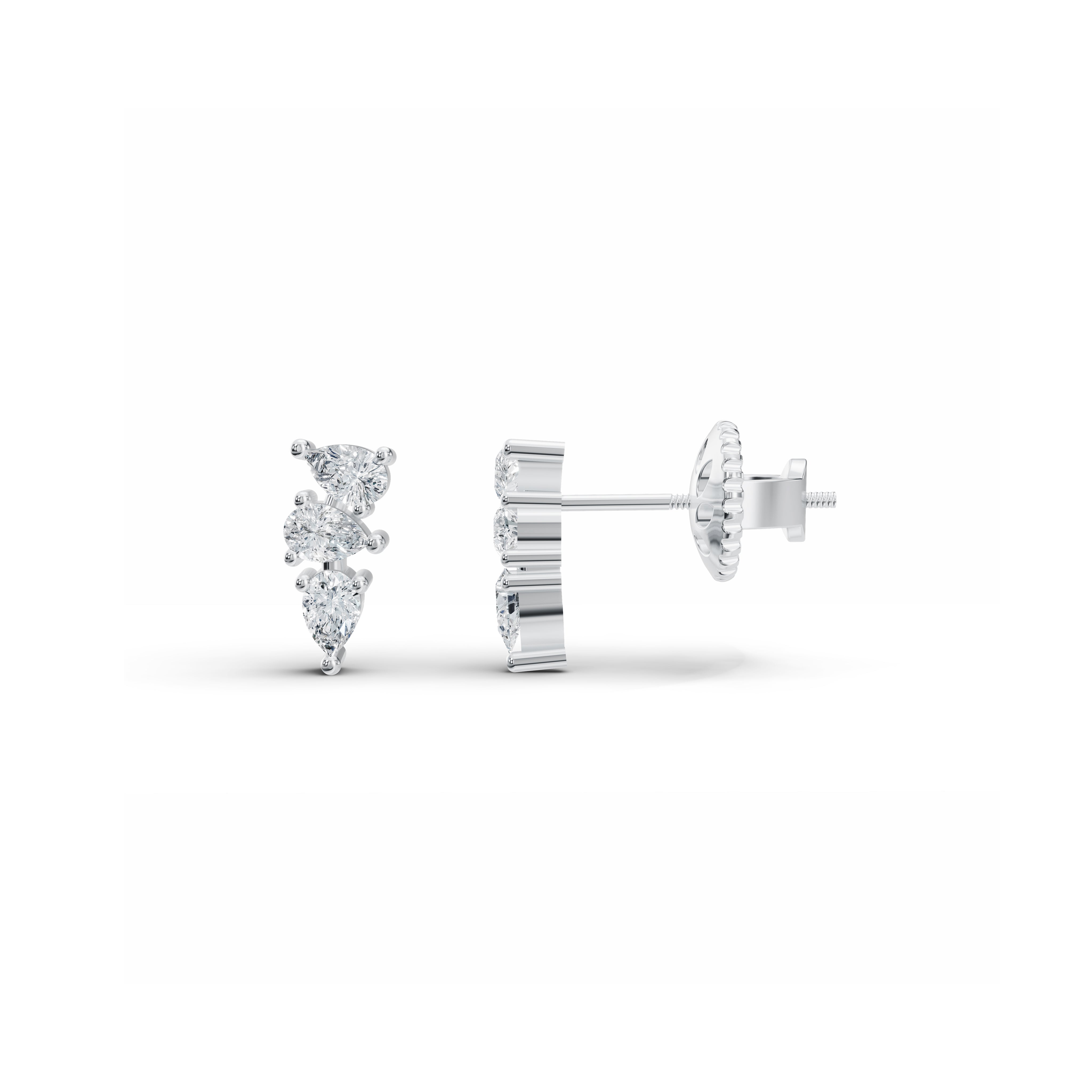 The Tri-Pear Diamond Studs feature three pear-shaped lab-grown diamonds arranged in a graceful vertical design, creating a radiant and contemporary sparkle perfect for any occasion. This sleek and modern design stud adds brilliance to any look, and can be worn as a stud or side stud.